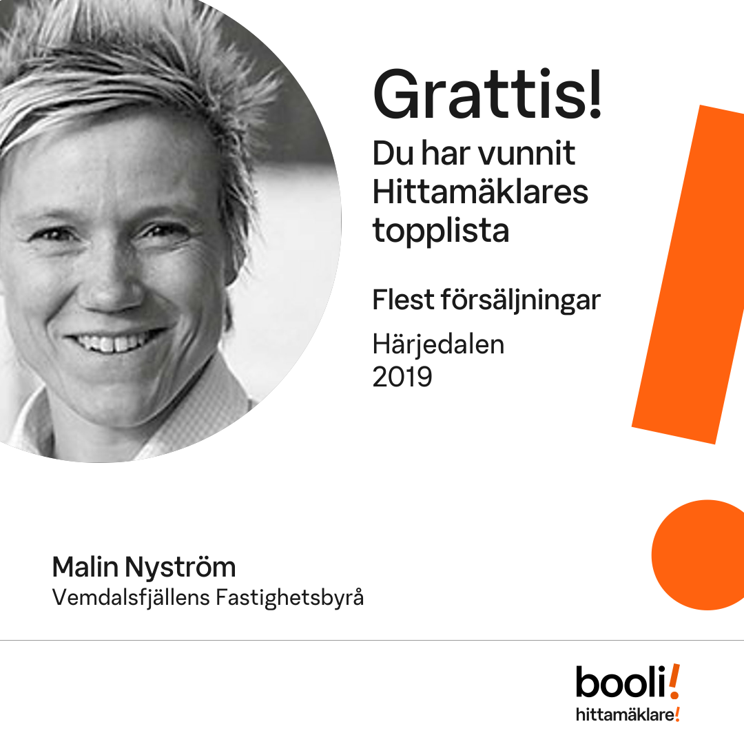 Statistik för publicerade bostäder, försäljningar och omdömen baseras på data från Booli och Hittamäklare. Statistiken för försäljningar avser inrapporterade och verifierade slutpriser från mäklare eller av Booli inhämtade och verifierade slutpriser. Statistiken för publicerade bostäder baseras på information som publicerats på Booli.se. Statistik för omdömen och rekommendationer baseras på omdömen från säljare som lämnats via Booli och Hittamäklare.