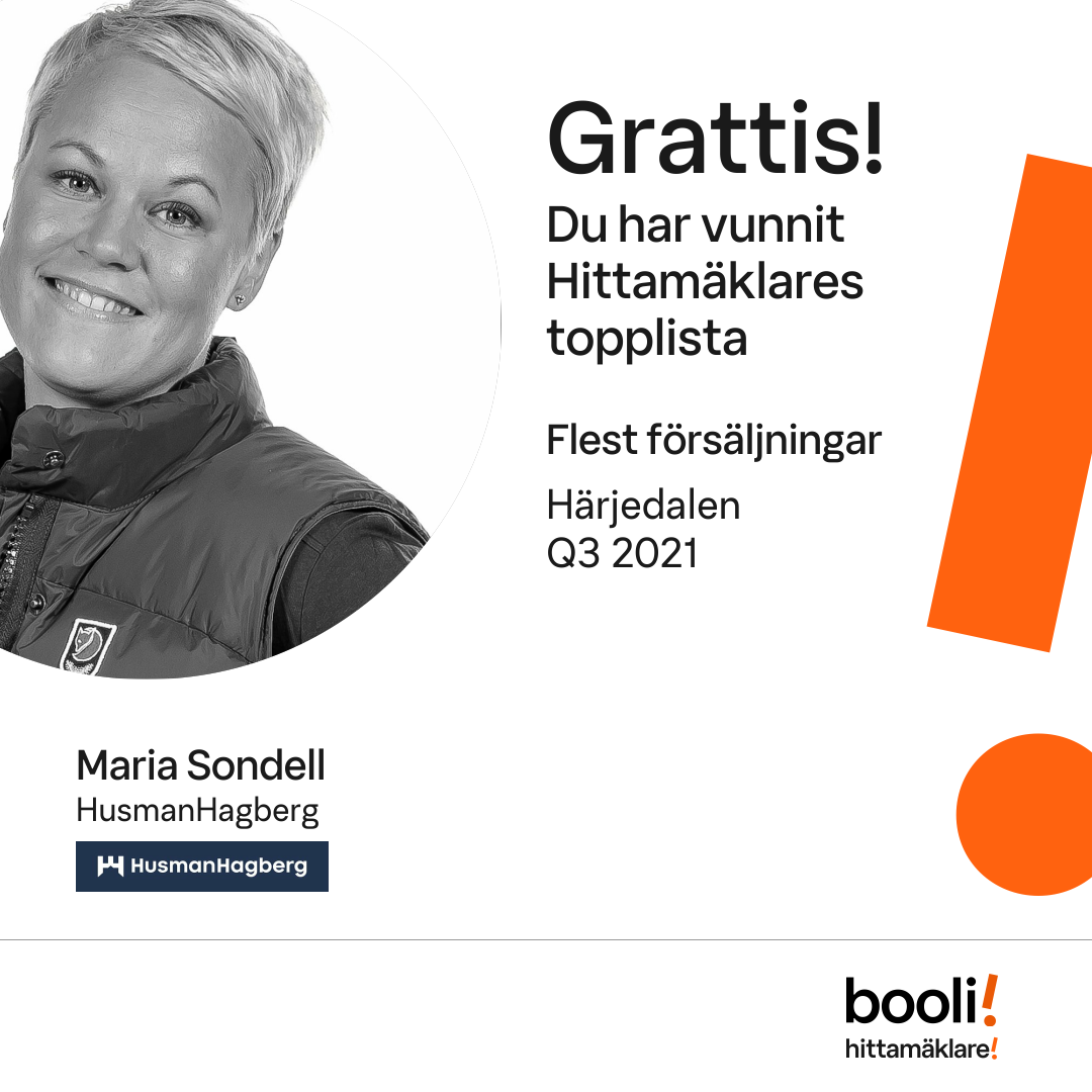 Statistik för publicerade bostäder, försäljningar och omdömen baseras på data från Booli och Hittamäklare. Statistiken för försäljningar avser inrapporterade och verifierade slutpriser från mäklare eller av Booli inhämtade och verifierade slutpriser. Statistiken för publicerade bostäder baseras på information som publicerats på Booli.se. Statistik för omdömen och rekommendationer baseras på omdömen från säljare som lämnats via Booli och Hittamäklare.