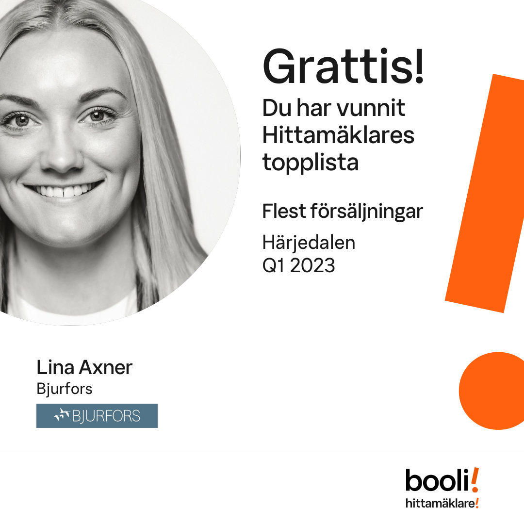 Statistik för publicerade bostäder, försäljningar och omdömen baseras på data från Booli och Hittamäklare. Statistiken för försäljningar avser inrapporterade och verifierade slutpriser från mäklare eller av Booli inhämtade och verifierade slutpriser. Statistiken för publicerade bostäder baseras på information som publicerats på Booli.se. Statistik för omdömen och rekommendationer baseras på omdömen från säljare som lämnats via Booli och Hittamäklare.
