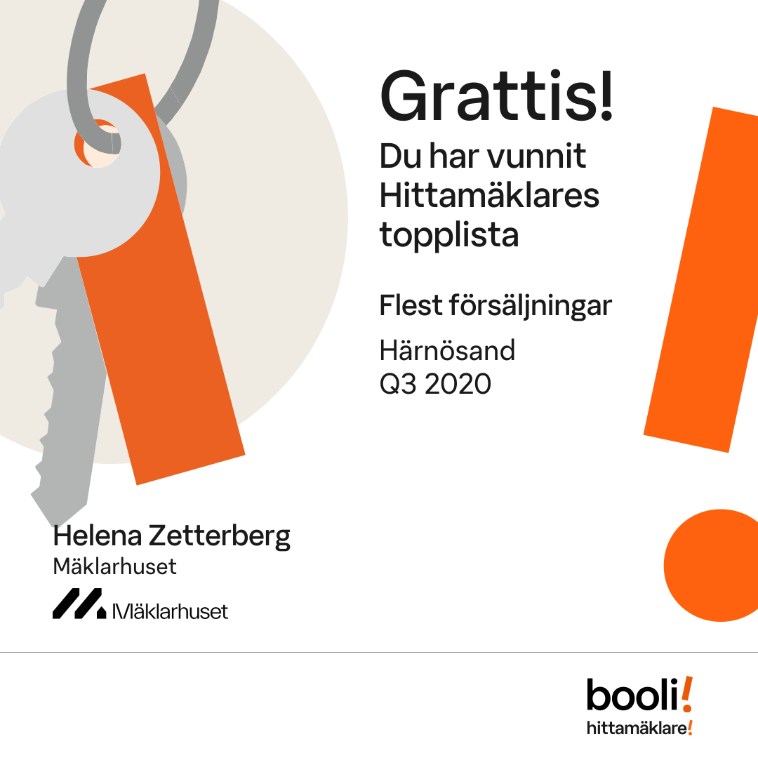 Statistik för publicerade bostäder, försäljningar och omdömen baseras på data från Booli och Hittamäklare. Statistiken för försäljningar avser inrapporterade och verifierade slutpriser från mäklare eller av Booli inhämtade och verifierade slutpriser. Statistiken för publicerade bostäder baseras på information som publicerats på Booli.se. Statistik för omdömen och rekommendationer baseras på omdömen från säljare som lämnats via Booli och Hittamäklare.