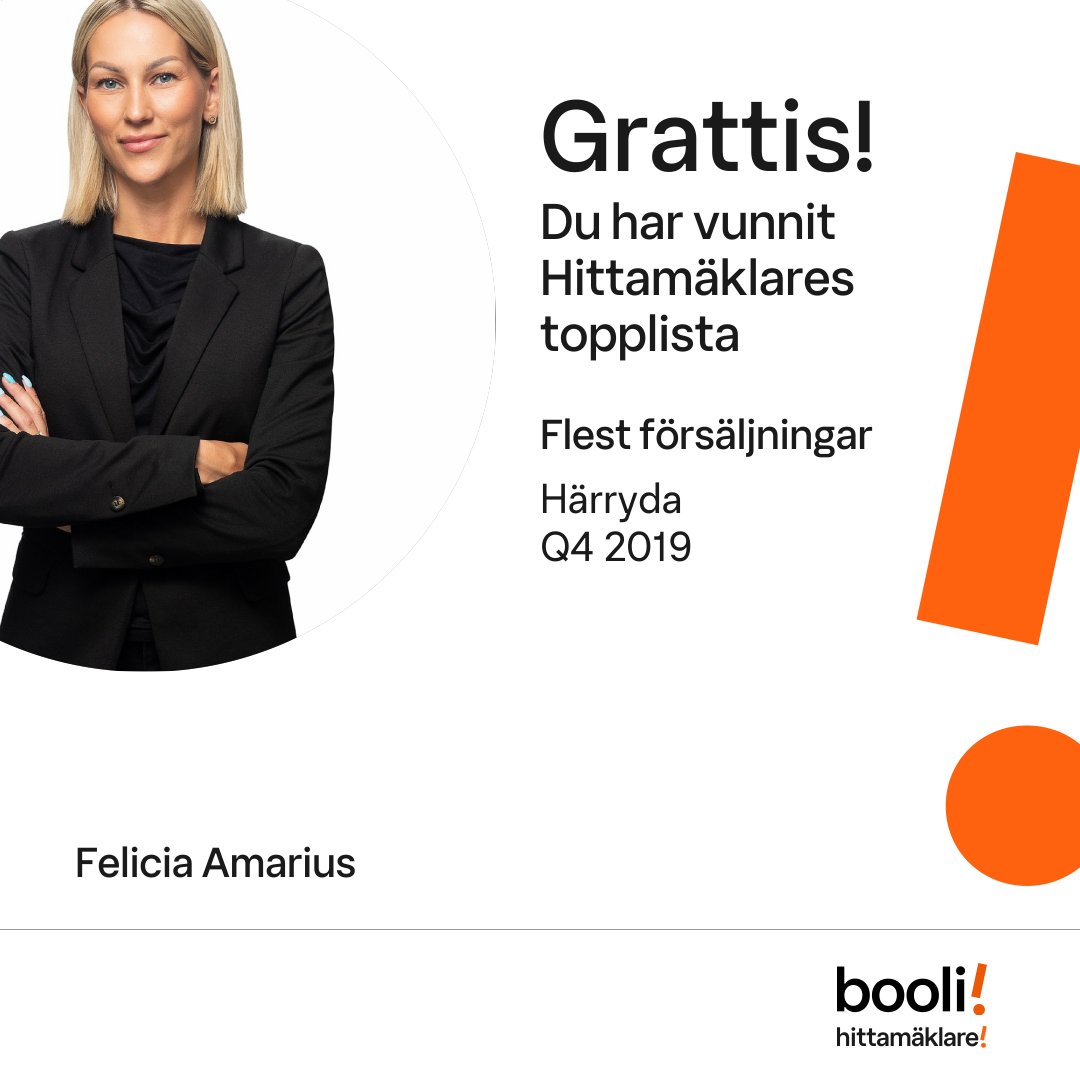 Statistik för publicerade bostäder, försäljningar och omdömen baseras på data från Booli och Hittamäklare. Statistiken för försäljningar avser inrapporterade och verifierade slutpriser från mäklare eller av Booli inhämtade och verifierade slutpriser. Statistiken för publicerade bostäder baseras på information som publicerats på Booli.se. Statistik för omdömen och rekommendationer baseras på omdömen från säljare som lämnats via Booli och Hittamäklare.
