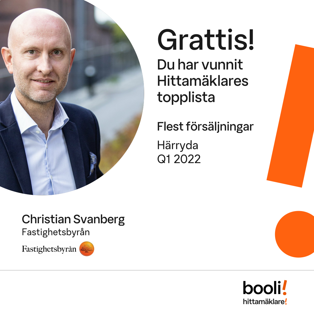 Statistik för publicerade bostäder, försäljningar och omdömen baseras på data från Booli och Hittamäklare. Statistiken för försäljningar avser inrapporterade och verifierade slutpriser från mäklare eller av Booli inhämtade och verifierade slutpriser. Statistiken för publicerade bostäder baseras på information som publicerats på Booli.se. Statistik för omdömen och rekommendationer baseras på omdömen från säljare som lämnats via Booli och Hittamäklare.