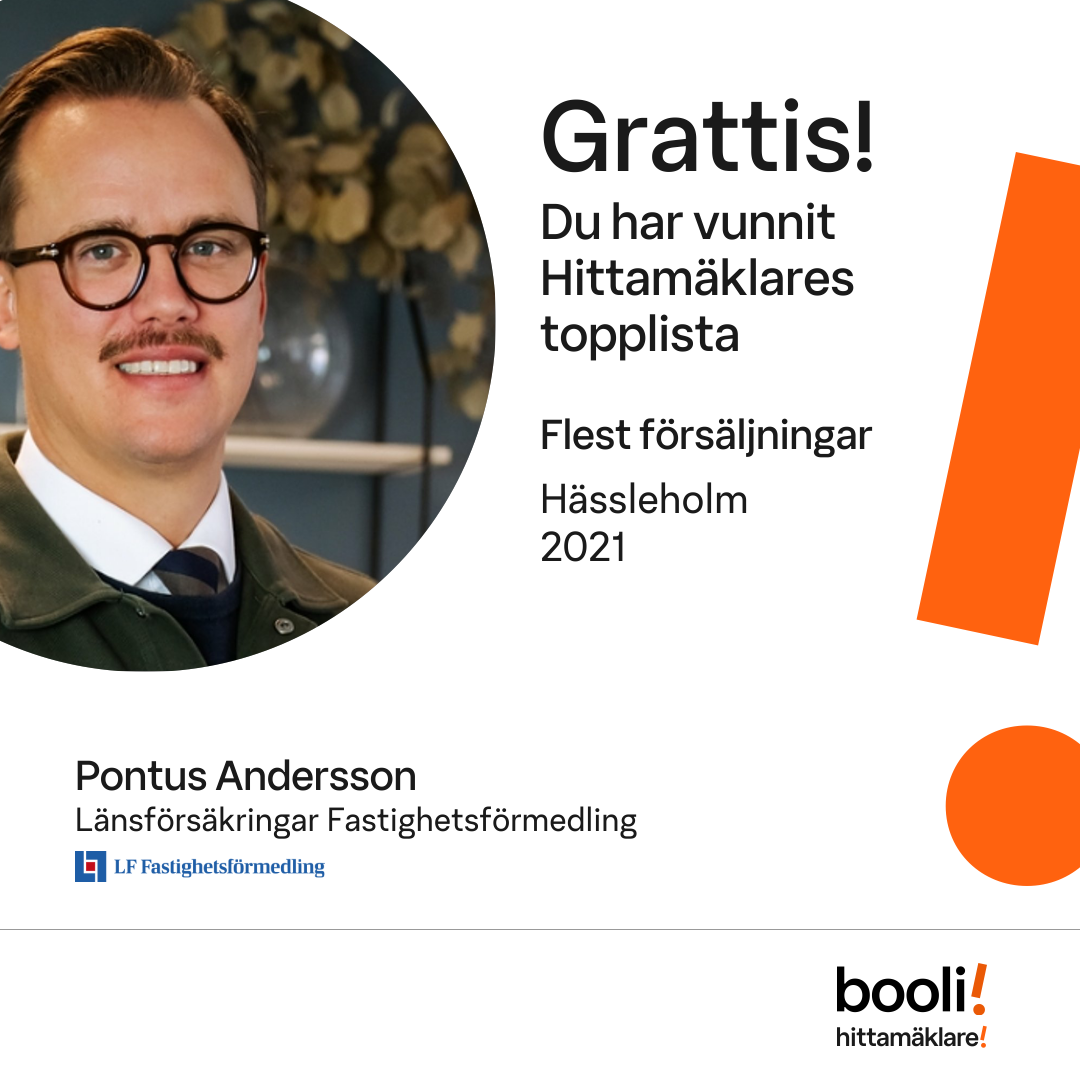 Statistik för publicerade bostäder, försäljningar och omdömen baseras på data från Booli och Hittamäklare. Statistiken för försäljningar avser inrapporterade och verifierade slutpriser från mäklare eller av Booli inhämtade och verifierade slutpriser. Statistiken för publicerade bostäder baseras på information som publicerats på Booli.se. Statistik för omdömen och rekommendationer baseras på omdömen från säljare som lämnats via Booli och Hittamäklare.
