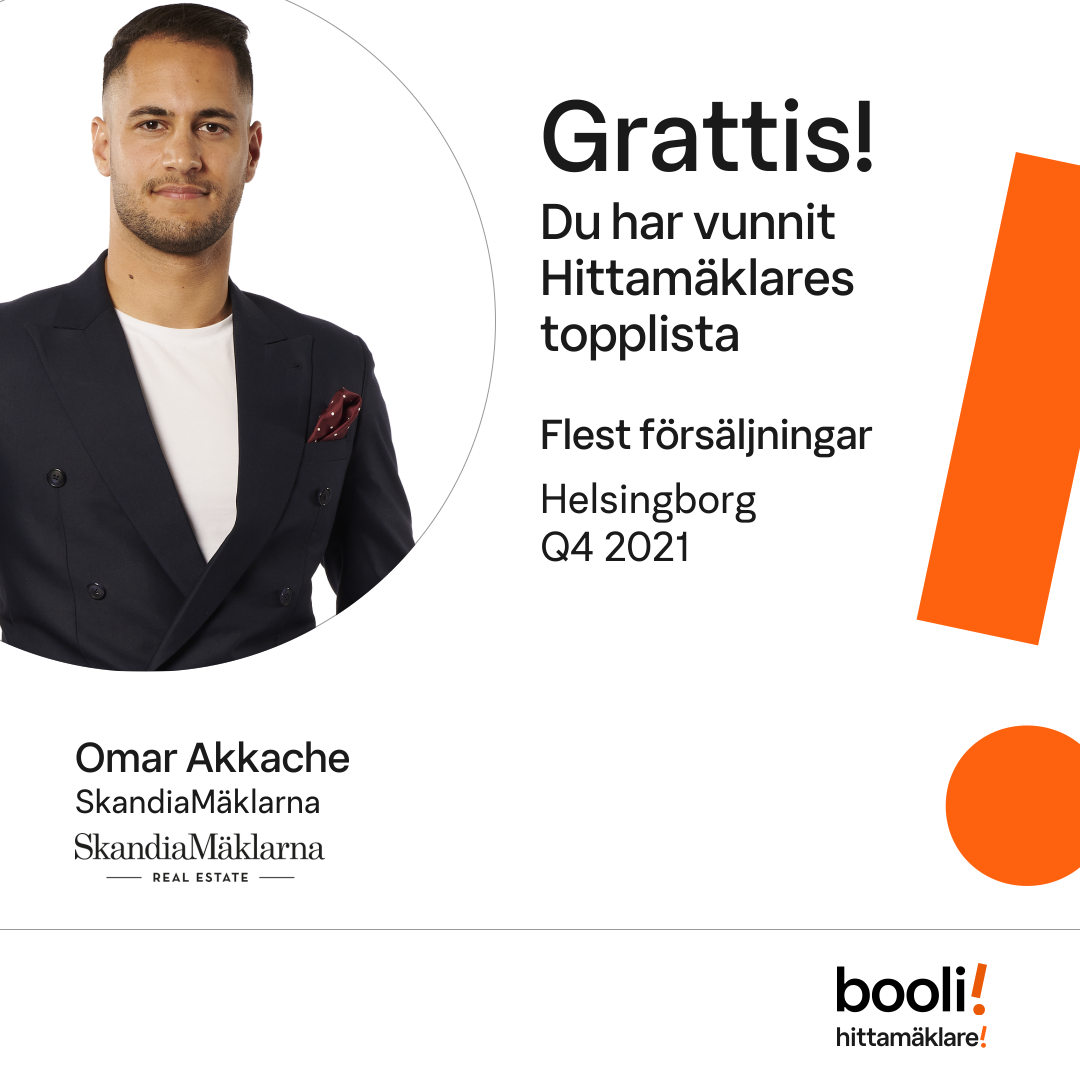 Statistik för publicerade bostäder, försäljningar och omdömen baseras på data från Booli och Hittamäklare. Statistiken för försäljningar avser inrapporterade och verifierade slutpriser från mäklare eller av Booli inhämtade och verifierade slutpriser. Statistiken för publicerade bostäder baseras på information som publicerats på Booli.se. Statistik för omdömen och rekommendationer baseras på omdömen från säljare som lämnats via Booli och Hittamäklare.