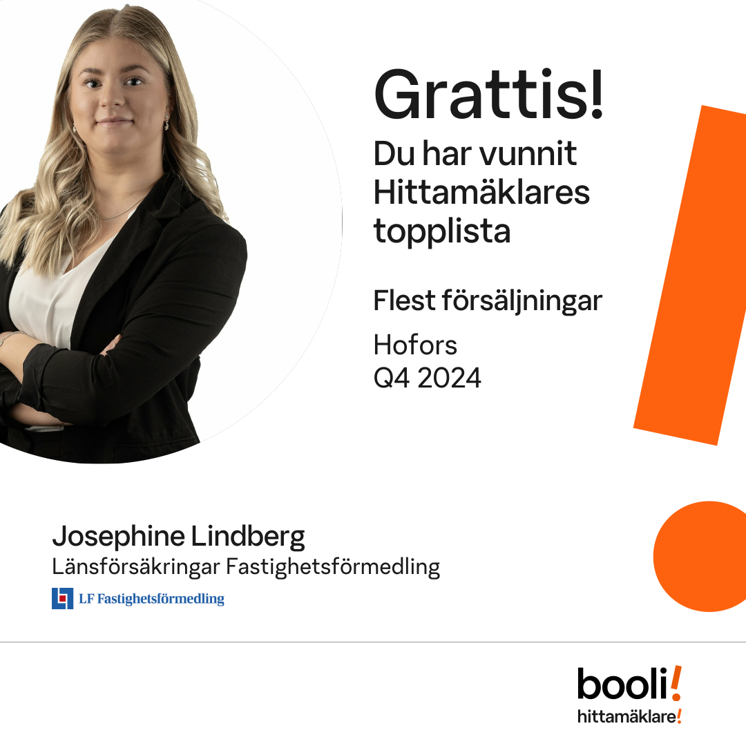 Statistik för publicerade bostäder, försäljningar och omdömen baseras på data från Booli och Hittamäklare. Statistiken för försäljningar avser inrapporterade och verifierade slutpriser från mäklare eller av Booli inhämtade och verifierade slutpriser. Statistiken för publicerade bostäder baseras på information som publicerats på Booli.se. Statistik för omdömen och rekommendationer baseras på omdömen från säljare som lämnats via Booli och Hittamäklare.