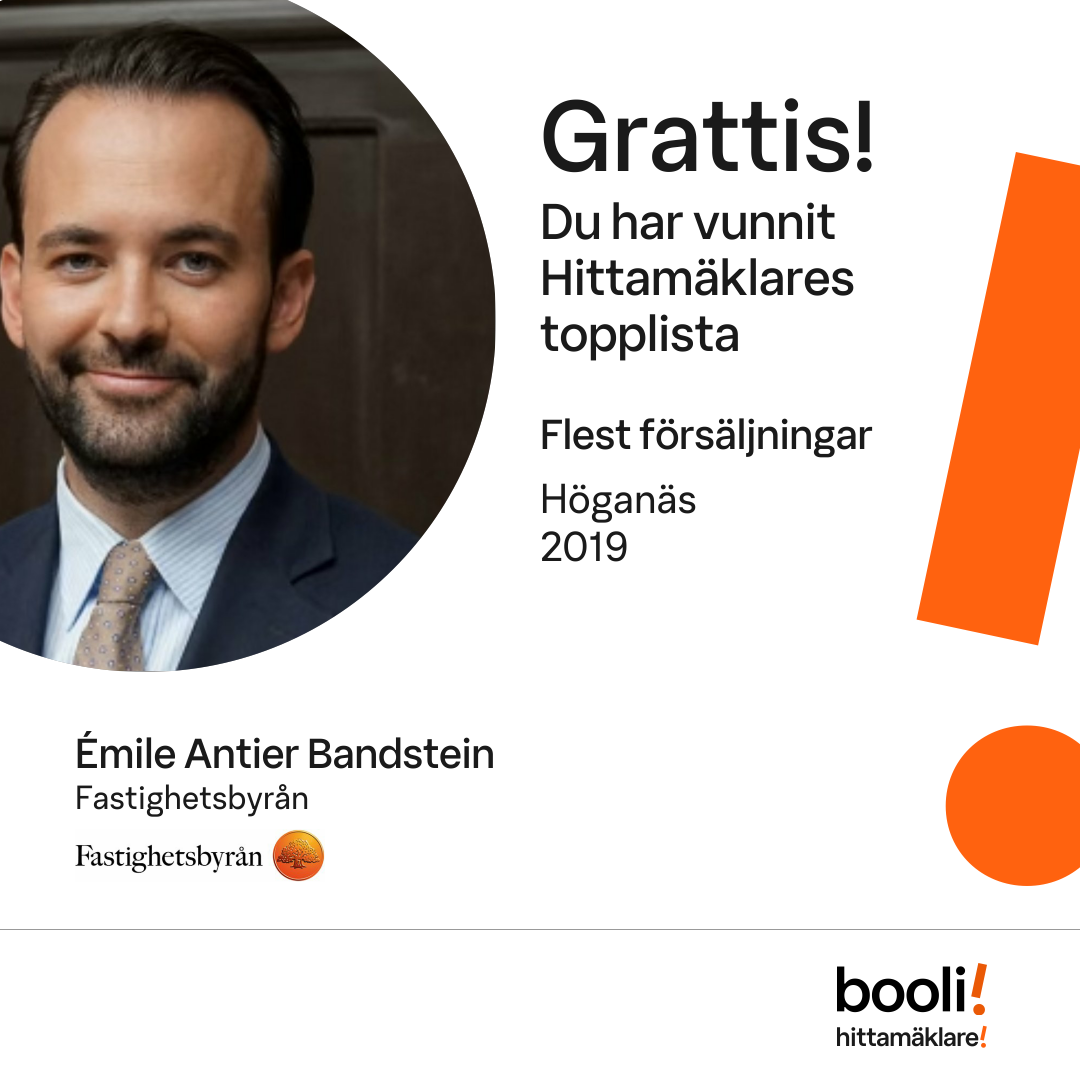 Statistik för publicerade bostäder, försäljningar och omdömen baseras på data från Booli och Hittamäklare. Statistiken för försäljningar avser inrapporterade och verifierade slutpriser från mäklare eller av Booli inhämtade och verifierade slutpriser. Statistiken för publicerade bostäder baseras på information som publicerats på Booli.se. Statistik för omdömen och rekommendationer baseras på omdömen från säljare som lämnats via Booli och Hittamäklare.
