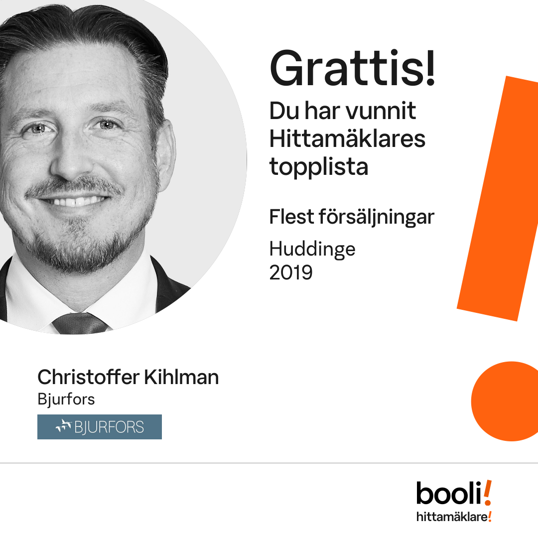 Statistik för publicerade bostäder, försäljningar och omdömen baseras på data från Booli och Hittamäklare. Statistiken för försäljningar avser inrapporterade och verifierade slutpriser från mäklare eller av Booli inhämtade och verifierade slutpriser. Statistiken för publicerade bostäder baseras på information som publicerats på Booli.se. Statistik för omdömen och rekommendationer baseras på omdömen från säljare som lämnats via Booli och Hittamäklare.