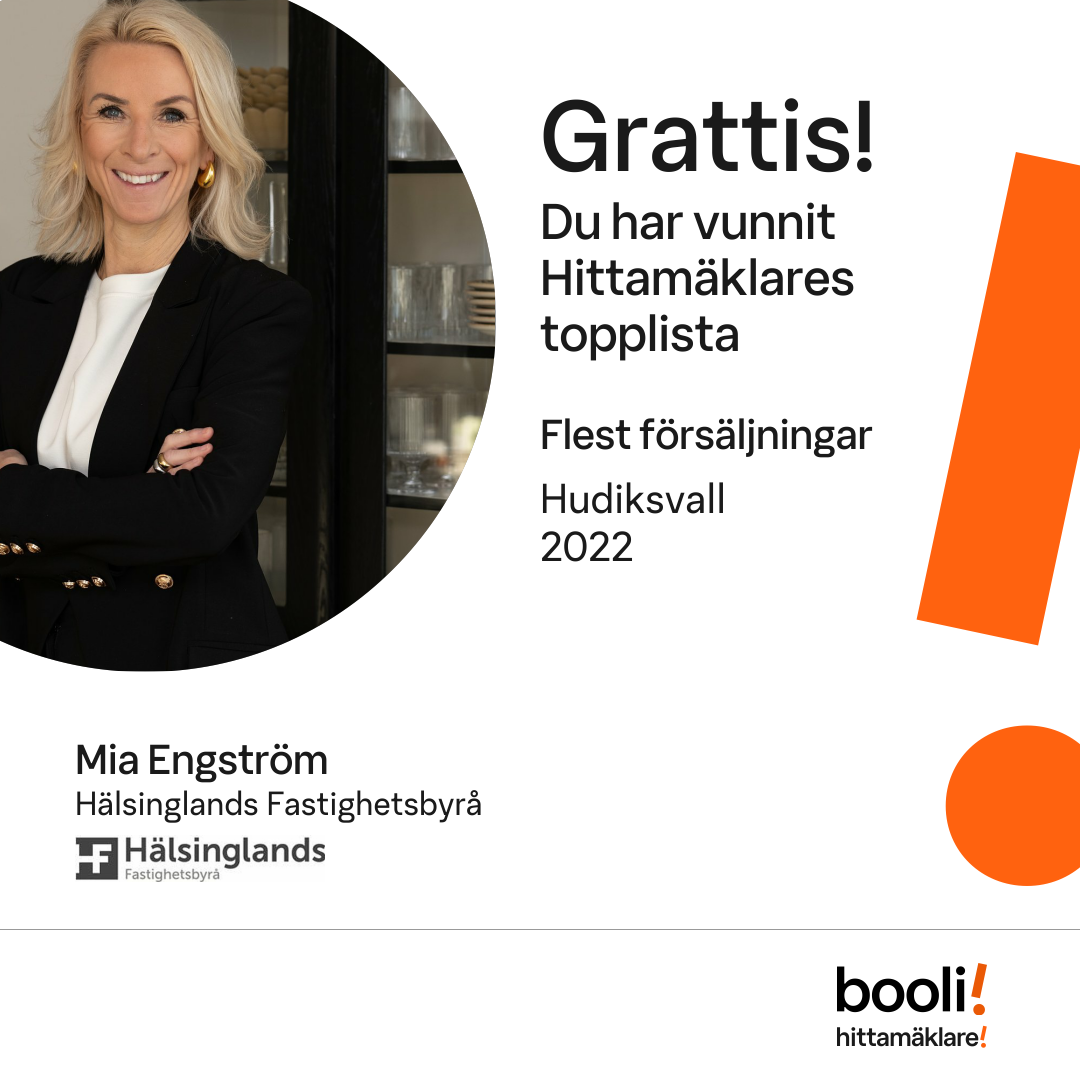Statistik för publicerade bostäder, försäljningar och omdömen baseras på data från Booli och Hittamäklare. Statistiken för försäljningar avser inrapporterade och verifierade slutpriser från mäklare eller av Booli inhämtade och verifierade slutpriser. Statistiken för publicerade bostäder baseras på information som publicerats på Booli.se. Statistik för omdömen och rekommendationer baseras på omdömen från säljare som lämnats via Booli och Hittamäklare.