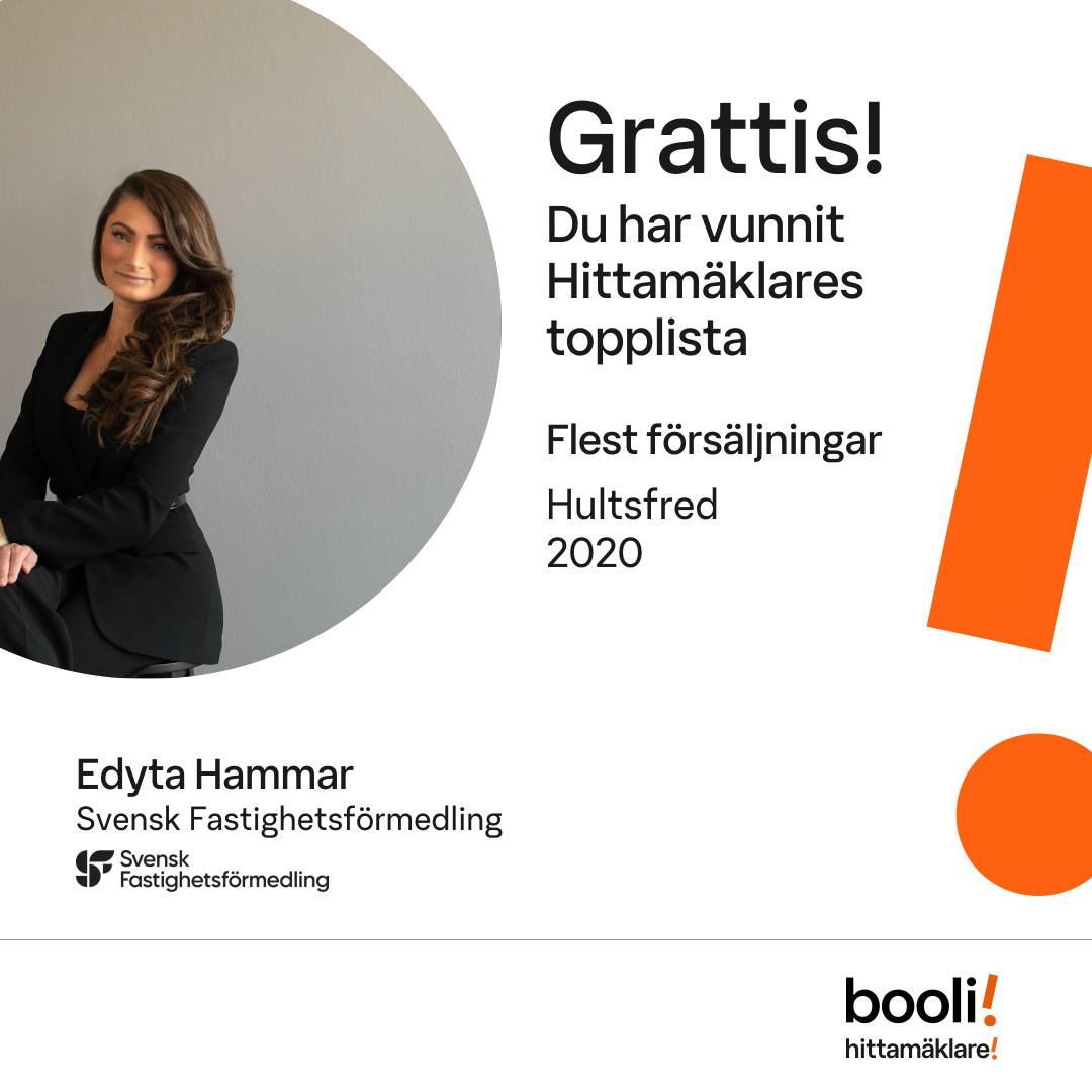 Statistik för publicerade bostäder, försäljningar och omdömen baseras på data från Booli och Hittamäklare. Statistiken för försäljningar avser inrapporterade och verifierade slutpriser från mäklare eller av Booli inhämtade och verifierade slutpriser. Statistiken för publicerade bostäder baseras på information som publicerats på Booli.se. Statistik för omdömen och rekommendationer baseras på omdömen från säljare som lämnats via Booli och Hittamäklare.