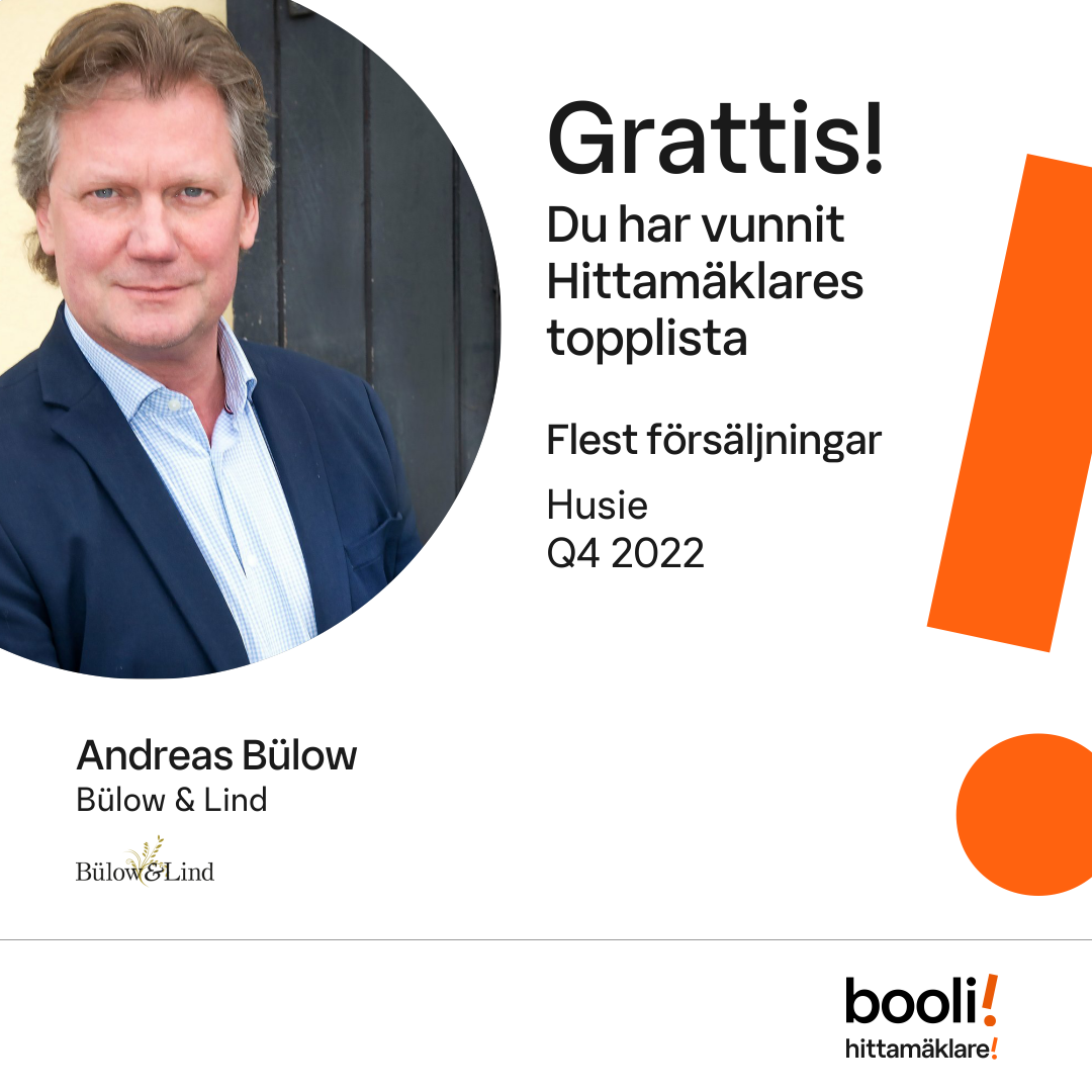 Statistik för publicerade bostäder, försäljningar och omdömen baseras på data från Booli och Hittamäklare. Statistiken för försäljningar avser inrapporterade och verifierade slutpriser från mäklare eller av Booli inhämtade och verifierade slutpriser. Statistiken för publicerade bostäder baseras på information som publicerats på Booli.se. Statistik för omdömen och rekommendationer baseras på omdömen från säljare som lämnats via Booli och Hittamäklare.
