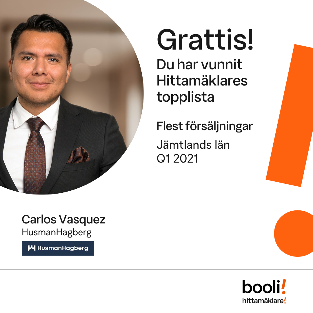 Statistik för publicerade bostäder, försäljningar och omdömen baseras på data från Booli och Hittamäklare. Statistiken för försäljningar avser inrapporterade och verifierade slutpriser från mäklare eller av Booli inhämtade och verifierade slutpriser. Statistiken för publicerade bostäder baseras på information som publicerats på Booli.se. Statistik för omdömen och rekommendationer baseras på omdömen från säljare som lämnats via Booli och Hittamäklare.