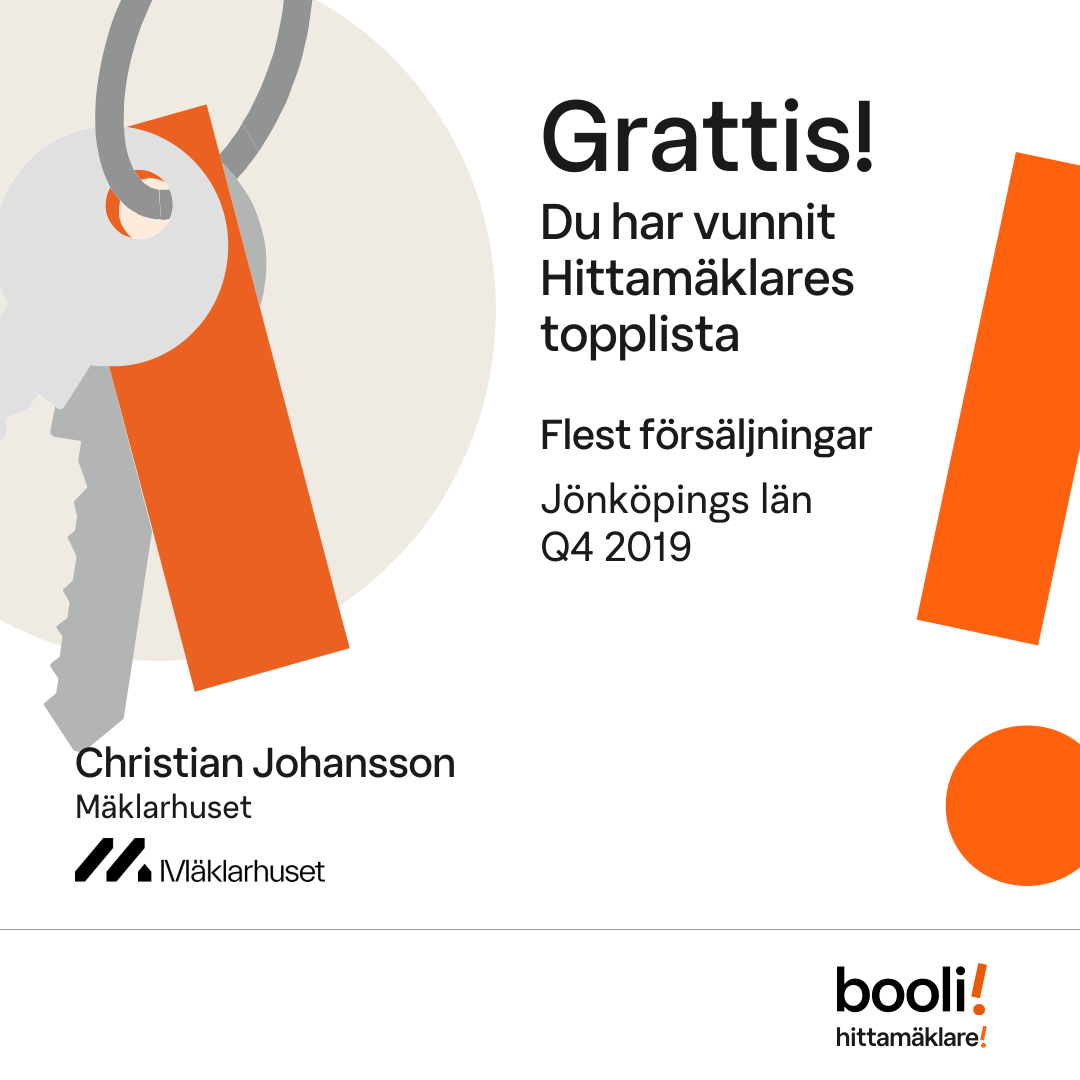 Statistik för publicerade bostäder, försäljningar och omdömen baseras på data från Booli och Hittamäklare. Statistiken för försäljningar avser inrapporterade och verifierade slutpriser från mäklare eller av Booli inhämtade och verifierade slutpriser. Statistiken för publicerade bostäder baseras på information som publicerats på Booli.se. Statistik för omdömen och rekommendationer baseras på omdömen från säljare som lämnats via Booli och Hittamäklare.