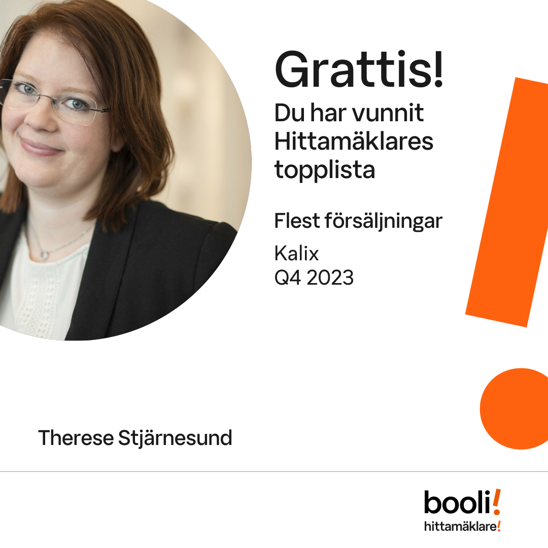 Statistik för publicerade bostäder, försäljningar och omdömen baseras på data från Booli och Hittamäklare. Statistiken för försäljningar avser inrapporterade och verifierade slutpriser från mäklare eller av Booli inhämtade och verifierade slutpriser. Statistiken för publicerade bostäder baseras på information som publicerats på Booli.se. Statistik för omdömen och rekommendationer baseras på omdömen från säljare som lämnats via Booli och Hittamäklare.