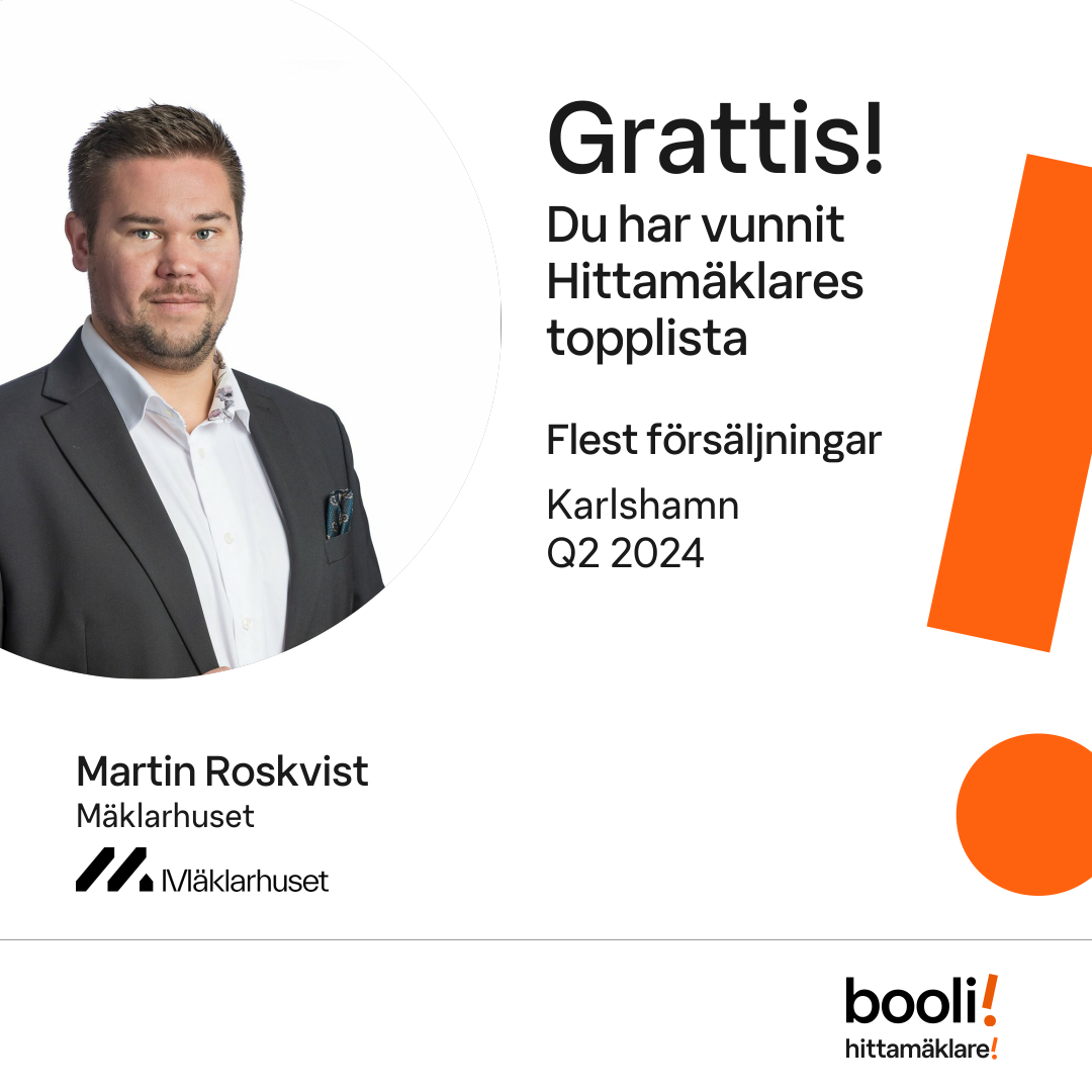 Statistik för publicerade bostäder, försäljningar och omdömen baseras på data från Booli och Hittamäklare. Statistiken för försäljningar avser inrapporterade och verifierade slutpriser från mäklare eller av Booli inhämtade och verifierade slutpriser. Statistiken för publicerade bostäder baseras på information som publicerats på Booli.se. Statistik för omdömen och rekommendationer baseras på omdömen från säljare som lämnats via Booli och Hittamäklare.