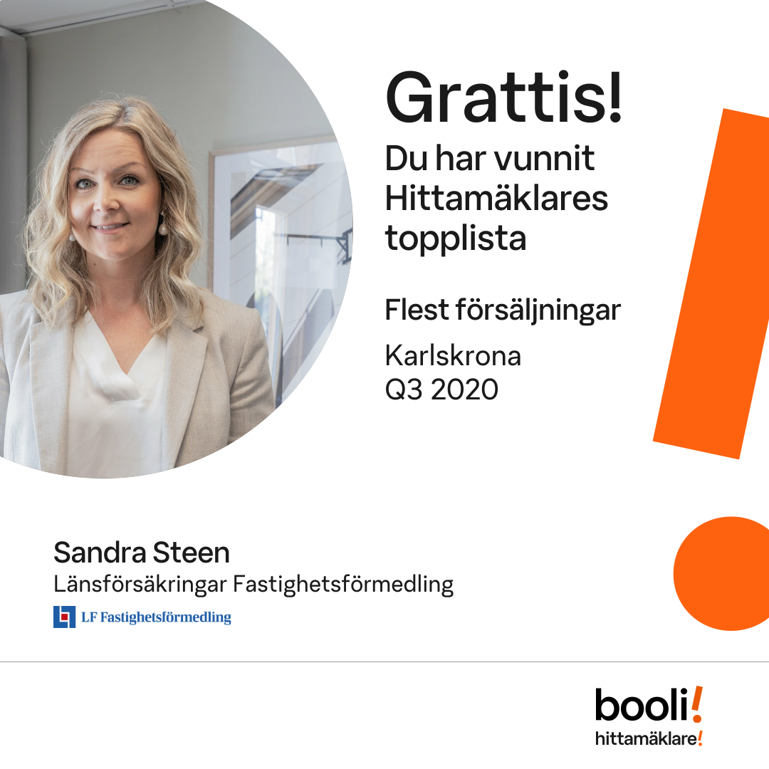 Mäklarna med flest försäljningar i Karlskrona tredje kvartalet 2020 enligt vår statistik. Publicerad 2020-10-07.