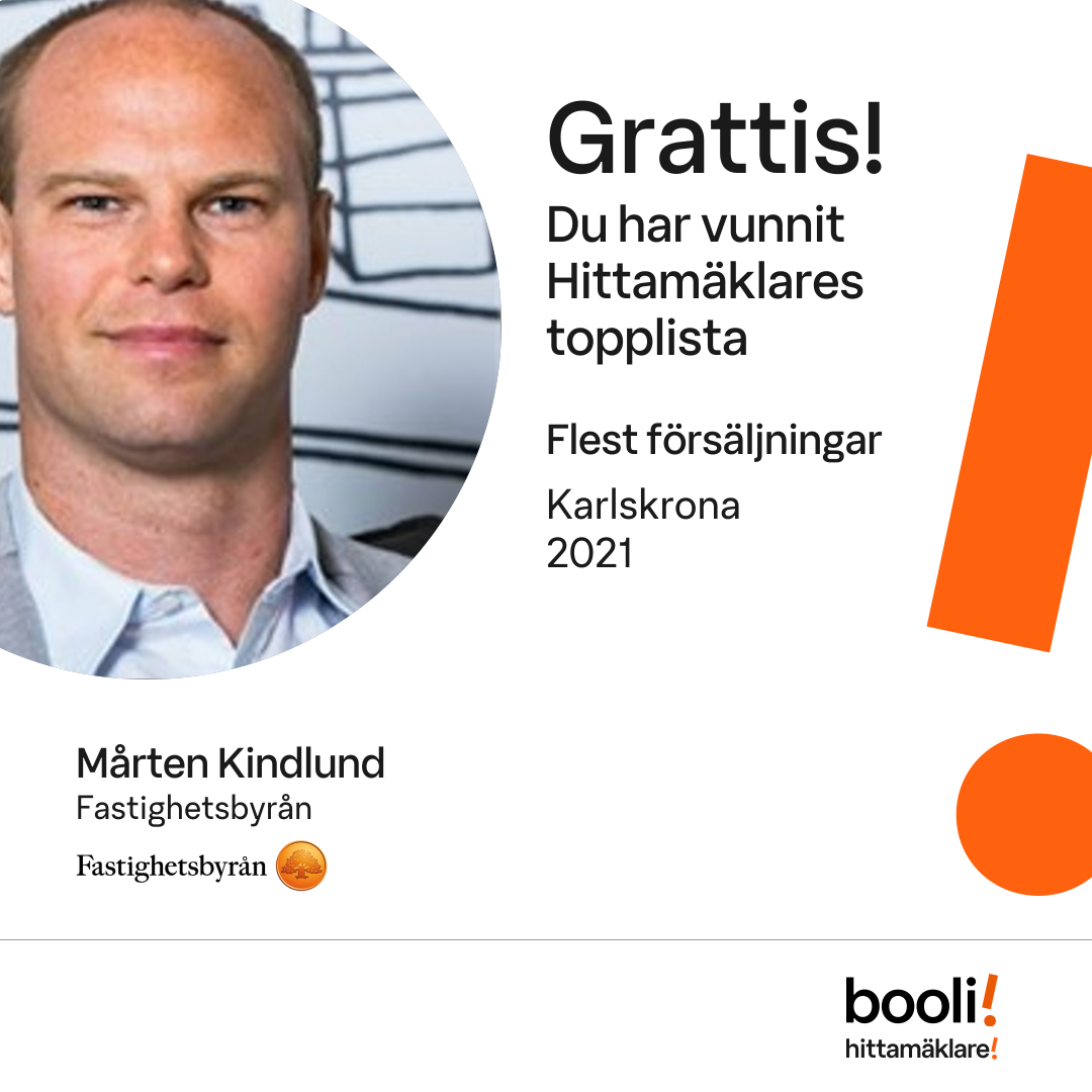 Statistik för publicerade bostäder, försäljningar och omdömen baseras på data från Booli och Hittamäklare. Statistiken för försäljningar avser inrapporterade och verifierade slutpriser från mäklare eller av Booli inhämtade och verifierade slutpriser. Statistiken för publicerade bostäder baseras på information som publicerats på Booli.se. Statistik för omdömen och rekommendationer baseras på omdömen från säljare som lämnats via Booli och Hittamäklare.