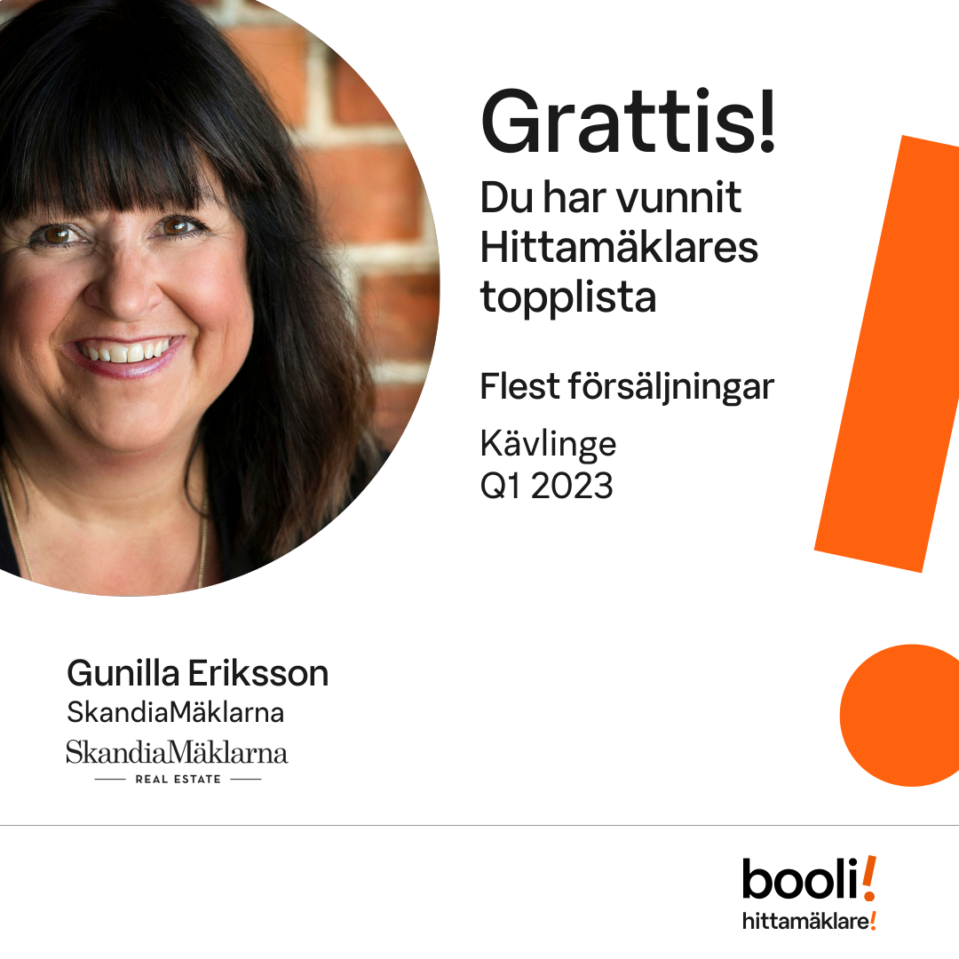 Statistik för publicerade bostäder, försäljningar och omdömen baseras på data från Booli och Hittamäklare. Statistiken för försäljningar avser inrapporterade och verifierade slutpriser från mäklare eller av Booli inhämtade och verifierade slutpriser. Statistiken för publicerade bostäder baseras på information som publicerats på Booli.se. Statistik för omdömen och rekommendationer baseras på omdömen från säljare som lämnats via Booli och Hittamäklare.