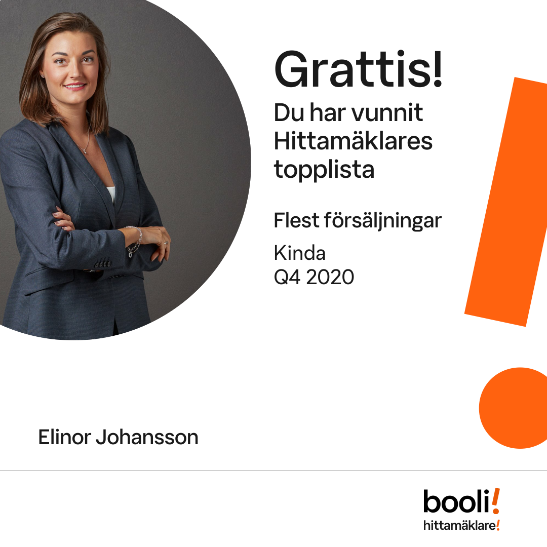 Statistik för publicerade bostäder, försäljningar och omdömen baseras på data från Booli och Hittamäklare. Statistiken för försäljningar avser inrapporterade och verifierade slutpriser från mäklare eller av Booli inhämtade och verifierade slutpriser. Statistiken för publicerade bostäder baseras på information som publicerats på Booli.se. Statistik för omdömen och rekommendationer baseras på omdömen från säljare som lämnats via Booli och Hittamäklare.