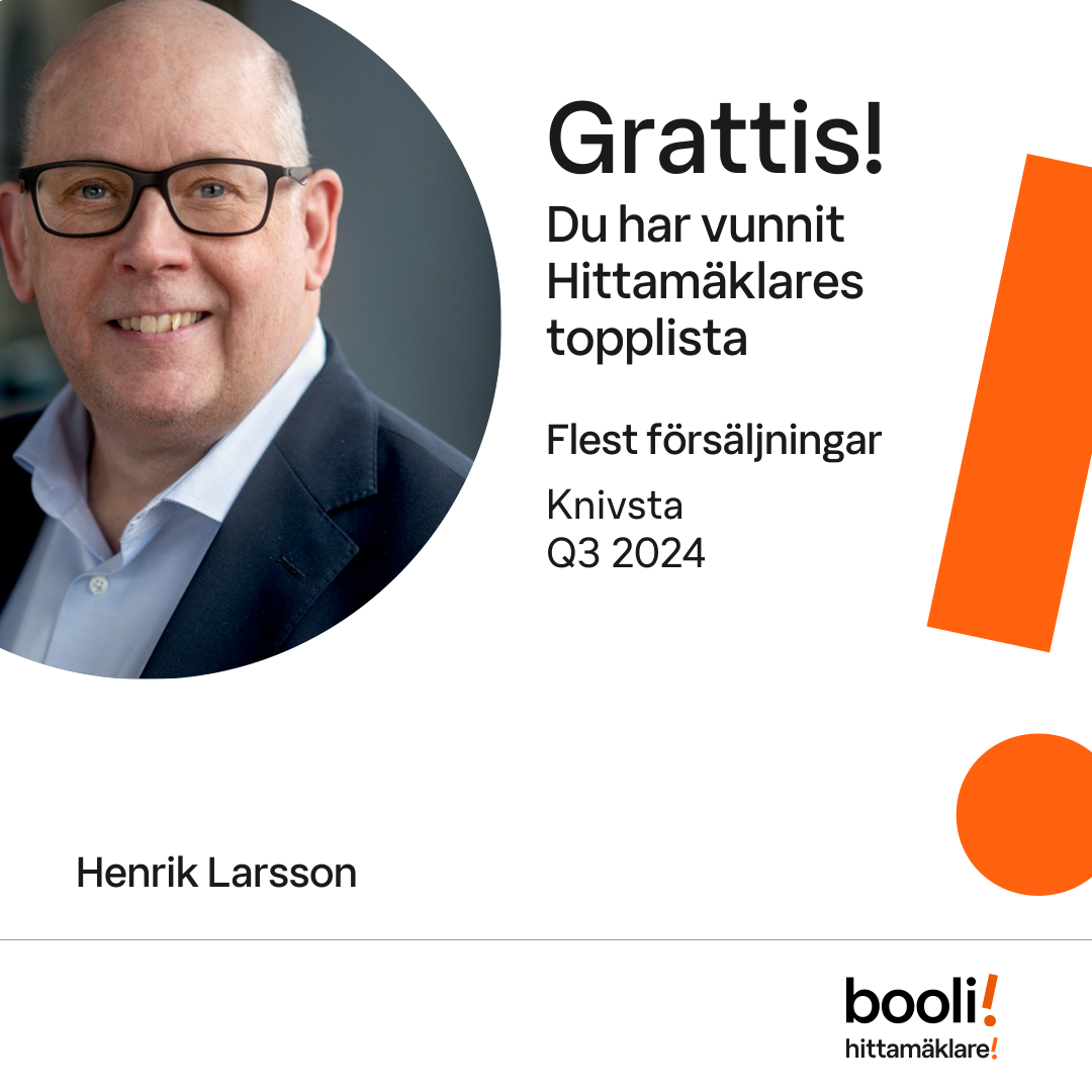 Statistik för publicerade bostäder, försäljningar och omdömen baseras på data från Booli och Hittamäklare. Statistiken för försäljningar avser inrapporterade och verifierade slutpriser från mäklare eller av Booli inhämtade och verifierade slutpriser. Statistiken för publicerade bostäder baseras på information som publicerats på Booli.se. Statistik för omdömen och rekommendationer baseras på omdömen från säljare som lämnats via Booli och Hittamäklare.