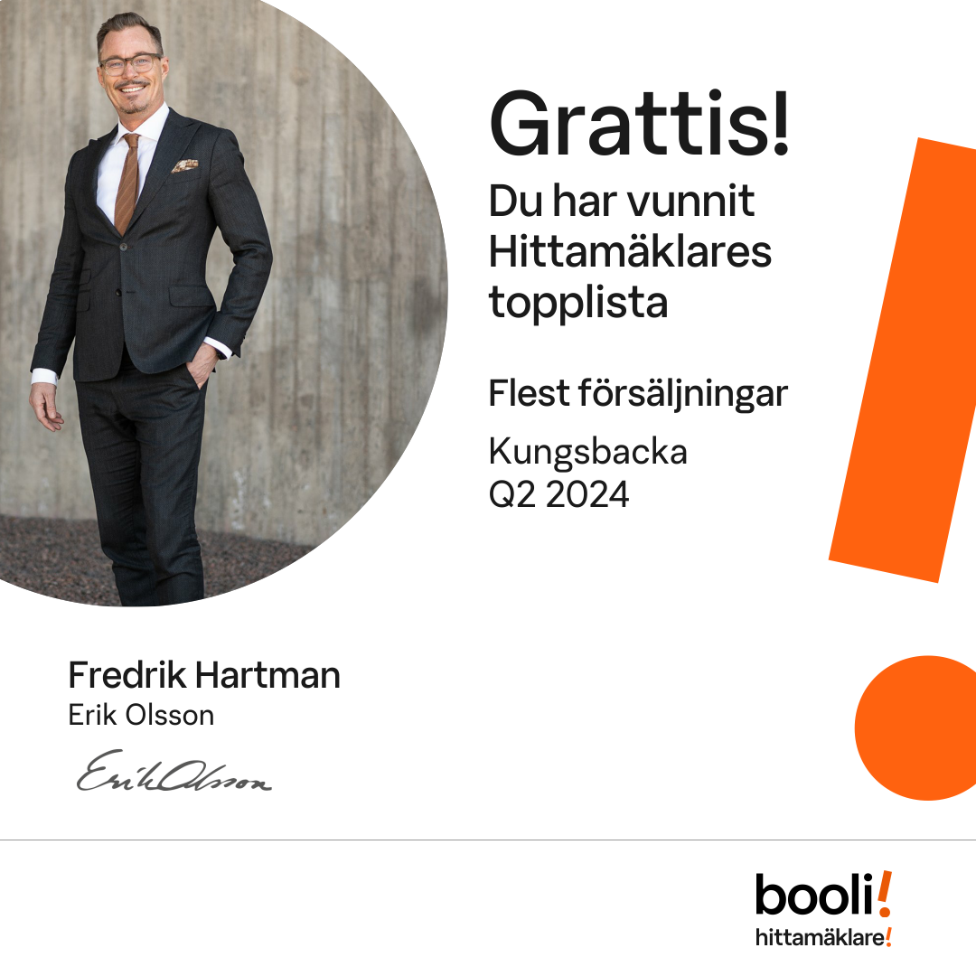 Statistik för publicerade bostäder, försäljningar och omdömen baseras på data från Booli och Hittamäklare. Statistiken för försäljningar avser inrapporterade och verifierade slutpriser från mäklare eller av Booli inhämtade och verifierade slutpriser. Statistiken för publicerade bostäder baseras på information som publicerats på Booli.se. Statistik för omdömen och rekommendationer baseras på omdömen från säljare som lämnats via Booli och Hittamäklare.
