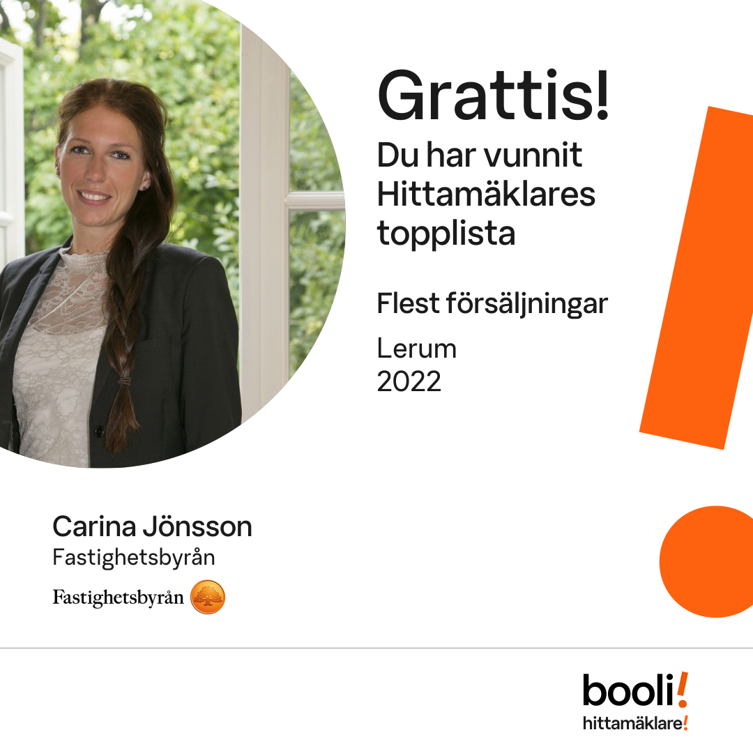 Statistik för publicerade bostäder, försäljningar och omdömen baseras på data från Booli och Hittamäklare. Statistiken för försäljningar avser inrapporterade och verifierade slutpriser från mäklare eller av Booli inhämtade och verifierade slutpriser. Statistiken för publicerade bostäder baseras på information som publicerats på Booli.se. Statistik för omdömen och rekommendationer baseras på omdömen från säljare som lämnats via Booli och Hittamäklare.