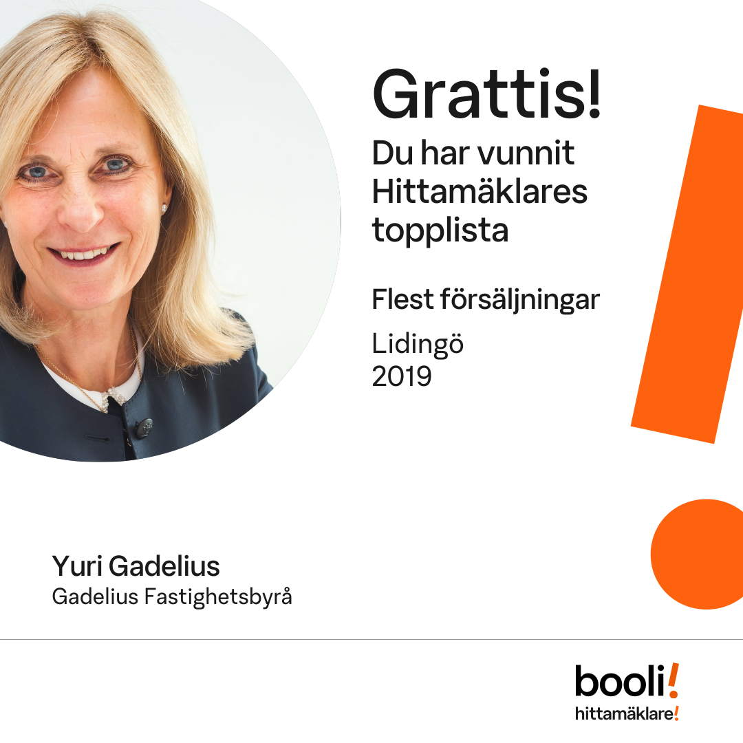 Statistik för publicerade bostäder, försäljningar och omdömen baseras på data från Booli och Hittamäklare. Statistiken för försäljningar avser inrapporterade och verifierade slutpriser från mäklare eller av Booli inhämtade och verifierade slutpriser. Statistiken för publicerade bostäder baseras på information som publicerats på Booli.se. Statistik för omdömen och rekommendationer baseras på omdömen från säljare som lämnats via Booli och Hittamäklare.
