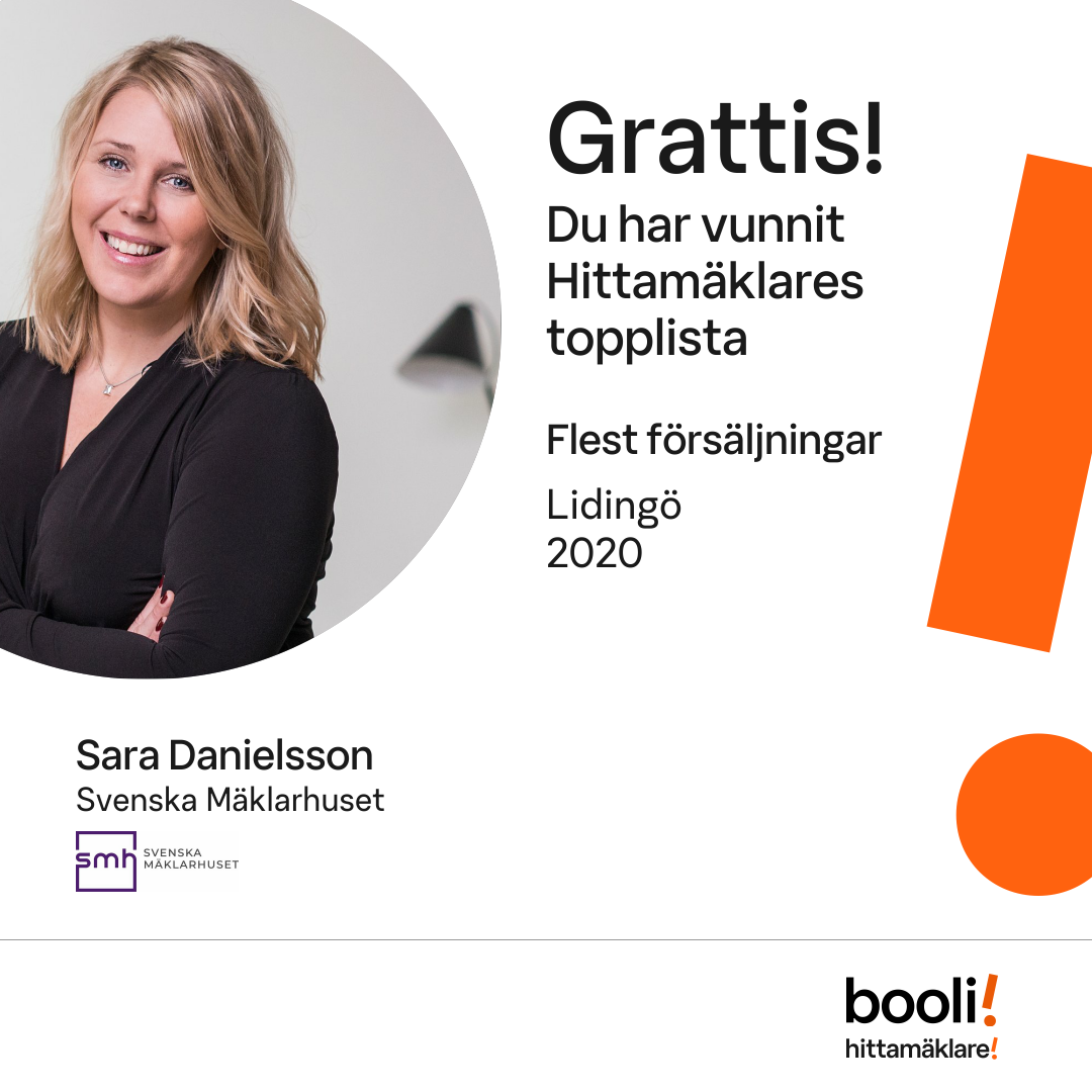 Statistik för publicerade bostäder, försäljningar och omdömen baseras på data från Booli och Hittamäklare. Statistiken för försäljningar avser inrapporterade och verifierade slutpriser från mäklare eller av Booli inhämtade och verifierade slutpriser. Statistiken för publicerade bostäder baseras på information som publicerats på Booli.se. Statistik för omdömen och rekommendationer baseras på omdömen från säljare som lämnats via Booli och Hittamäklare.