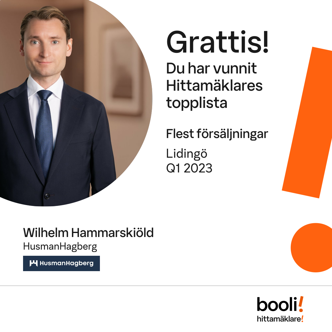 Statistik för publicerade bostäder, försäljningar och omdömen baseras på data från Booli och Hittamäklare. Statistiken för försäljningar avser inrapporterade och verifierade slutpriser från mäklare eller av Booli inhämtade och verifierade slutpriser. Statistiken för publicerade bostäder baseras på information som publicerats på Booli.se. Statistik för omdömen och rekommendationer baseras på omdömen från säljare som lämnats via Booli och Hittamäklare.