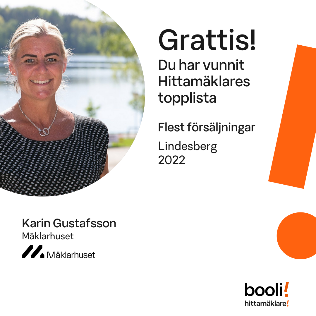 Statistik för publicerade bostäder, försäljningar och omdömen baseras på data från Booli och Hittamäklare. Statistiken för försäljningar avser inrapporterade och verifierade slutpriser från mäklare eller av Booli inhämtade och verifierade slutpriser. Statistiken för publicerade bostäder baseras på information som publicerats på Booli.se. Statistik för omdömen och rekommendationer baseras på omdömen från säljare som lämnats via Booli och Hittamäklare.