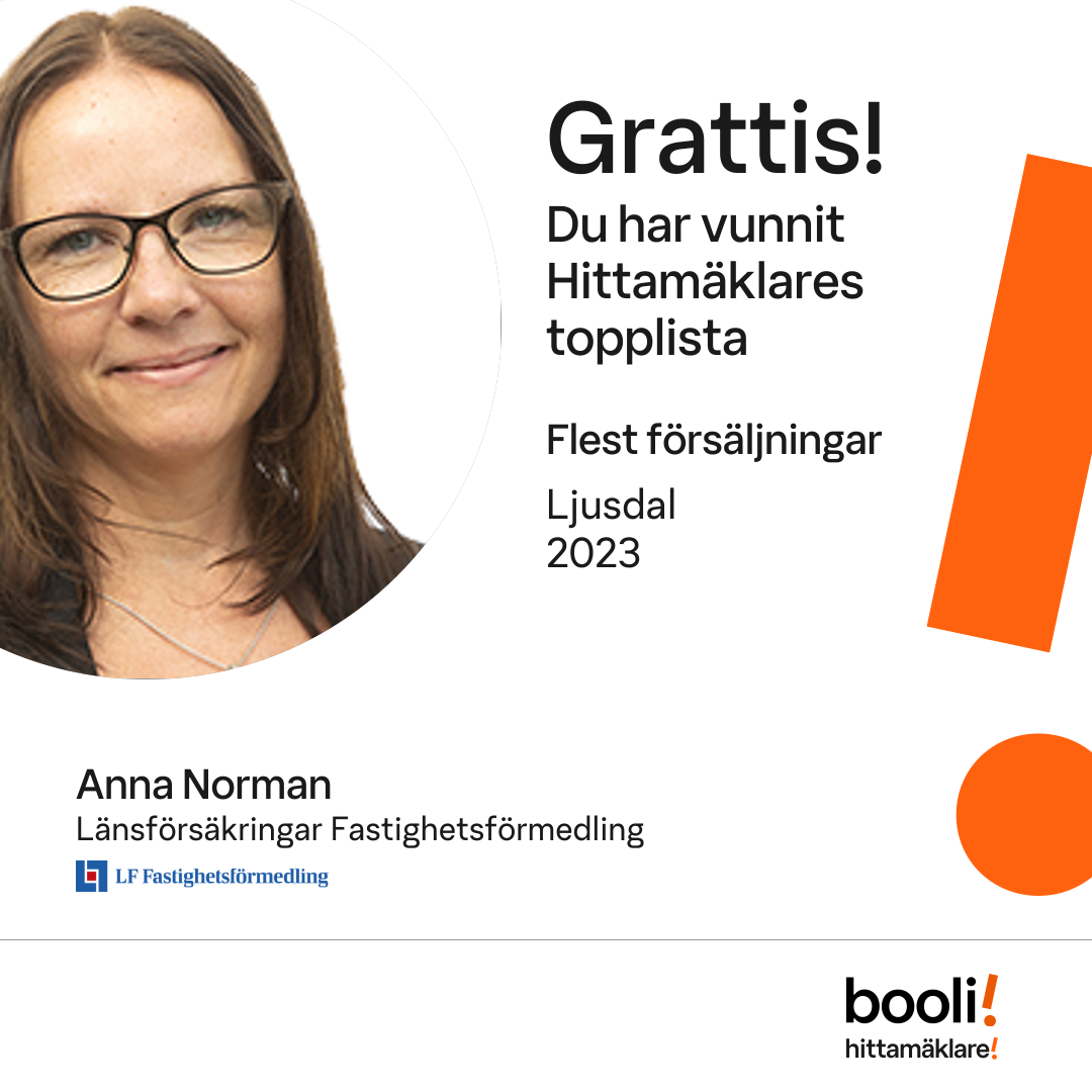 Statistik för publicerade bostäder, försäljningar och omdömen baseras på data från Booli och Hittamäklare. Statistiken för försäljningar avser inrapporterade och verifierade slutpriser från mäklare eller av Booli inhämtade och verifierade slutpriser. Statistiken för publicerade bostäder baseras på information som publicerats på Booli.se. Statistik för omdömen och rekommendationer baseras på omdömen från säljare som lämnats via Booli och Hittamäklare.