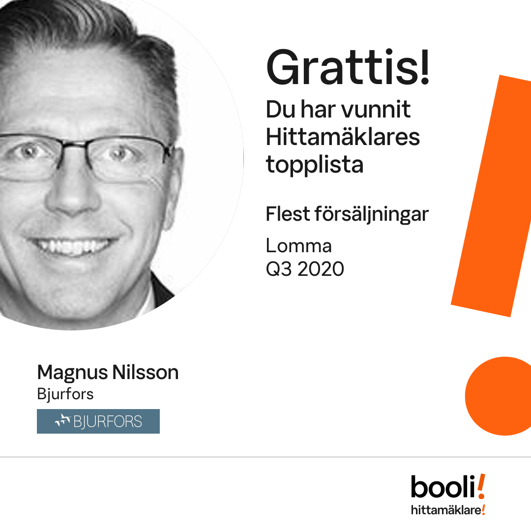 Statistik för publicerade bostäder, försäljningar och omdömen baseras på data från Booli och Hittamäklare. Statistiken för försäljningar avser inrapporterade och verifierade slutpriser från mäklare eller av Booli inhämtade och verifierade slutpriser. Statistiken för publicerade bostäder baseras på information som publicerats på Booli.se. Statistik för omdömen och rekommendationer baseras på omdömen från säljare som lämnats via Booli och Hittamäklare.