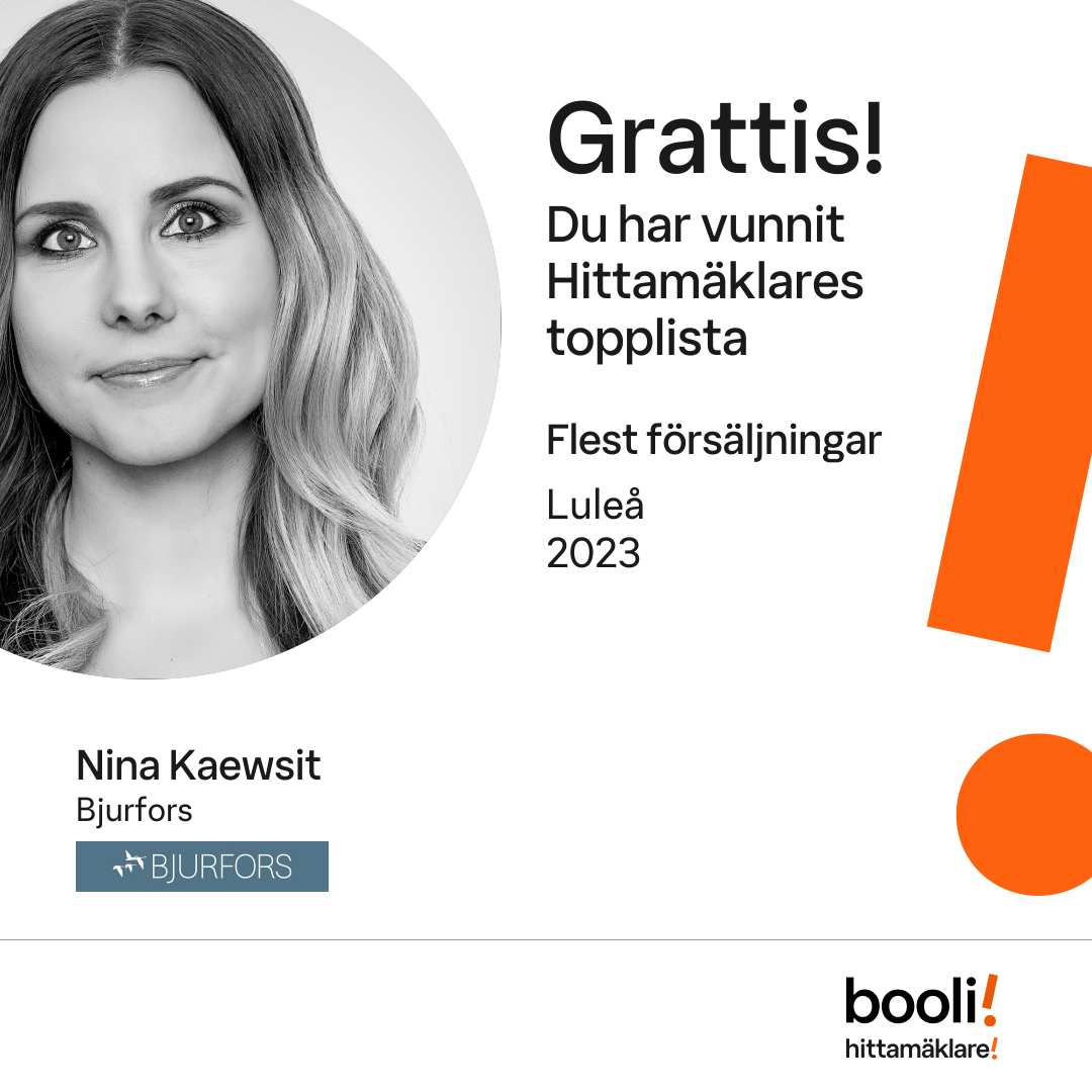 Statistik för publicerade bostäder, försäljningar och omdömen baseras på data från Booli och Hittamäklare. Statistiken för försäljningar avser inrapporterade och verifierade slutpriser från mäklare eller av Booli inhämtade och verifierade slutpriser. Statistiken för publicerade bostäder baseras på information som publicerats på Booli.se. Statistik för omdömen och rekommendationer baseras på omdömen från säljare som lämnats via Booli och Hittamäklare.