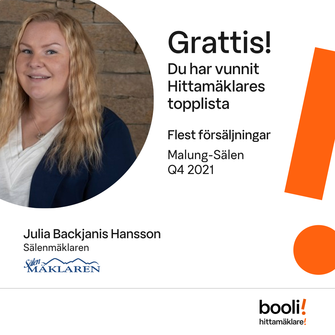 Mäklarna med flest försäljningar i Malung-Sälen fjärde kvartalet 2021 enligt vår statistik. Publicerad 2022-01-10.