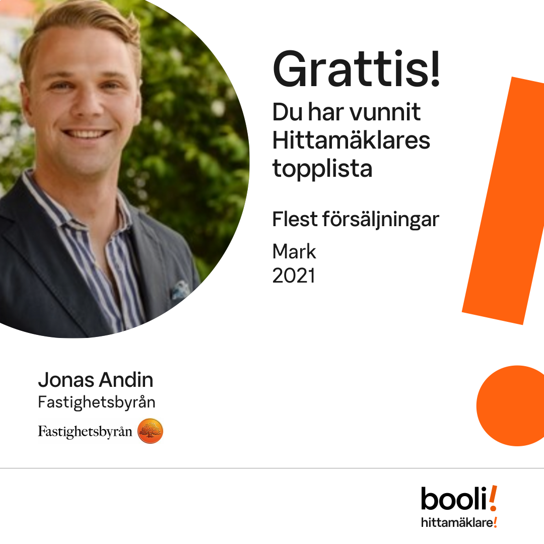 Statistik för publicerade bostäder, försäljningar och omdömen baseras på data från Booli och Hittamäklare. Statistiken för försäljningar avser inrapporterade och verifierade slutpriser från mäklare eller av Booli inhämtade och verifierade slutpriser. Statistiken för publicerade bostäder baseras på information som publicerats på Booli.se. Statistik för omdömen och rekommendationer baseras på omdömen från säljare som lämnats via Booli och Hittamäklare.