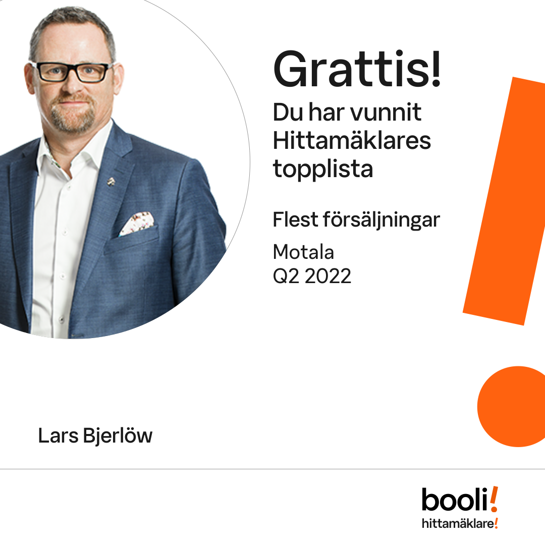 Statistik för publicerade bostäder, försäljningar och omdömen baseras på data från Booli och Hittamäklare. Statistiken för försäljningar avser inrapporterade och verifierade slutpriser från mäklare eller av Booli inhämtade och verifierade slutpriser. Statistiken för publicerade bostäder baseras på information som publicerats på Booli.se. Statistik för omdömen och rekommendationer baseras på omdömen från säljare som lämnats via Booli och Hittamäklare.