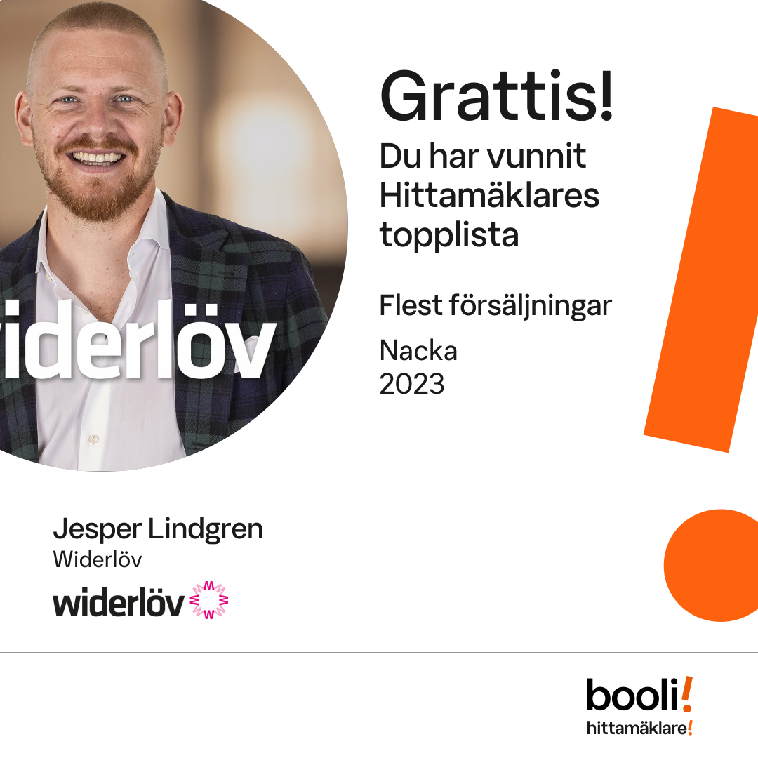 Statistik för publicerade bostäder, försäljningar och omdömen baseras på data från Booli och Hittamäklare. Statistiken för försäljningar avser inrapporterade och verifierade slutpriser från mäklare eller av Booli inhämtade och verifierade slutpriser. Statistiken för publicerade bostäder baseras på information som publicerats på Booli.se. Statistik för omdömen och rekommendationer baseras på omdömen från säljare som lämnats via Booli och Hittamäklare.