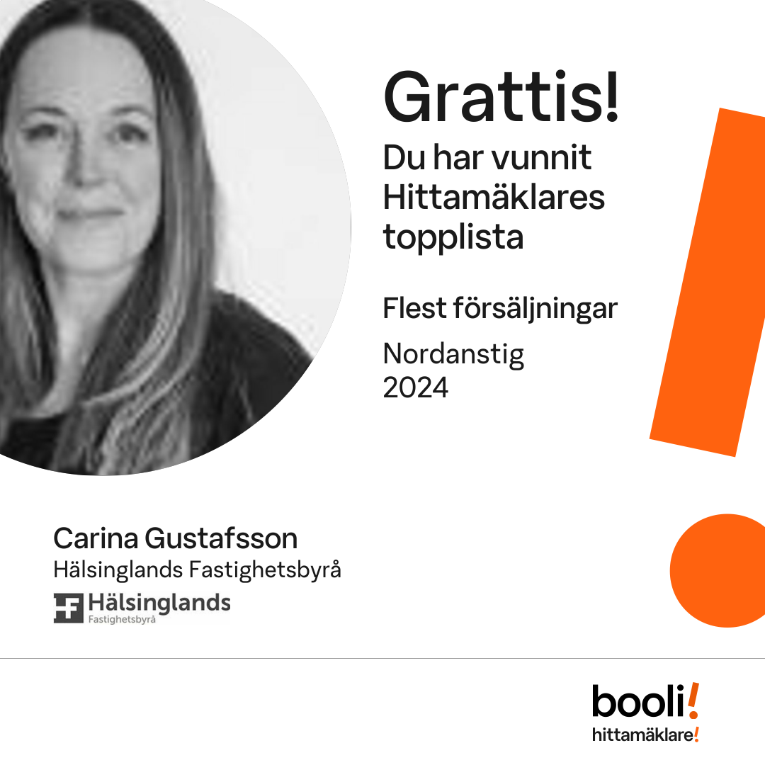 Statistik för publicerade bostäder, försäljningar och omdömen baseras på data från Booli och Hittamäklare. Statistiken för försäljningar avser inrapporterade och verifierade slutpriser från mäklare eller av Booli inhämtade och verifierade slutpriser. Statistiken för publicerade bostäder baseras på information som publicerats på Booli.se. Statistik för omdömen och rekommendationer baseras på omdömen från säljare som lämnats via Booli och Hittamäklare.