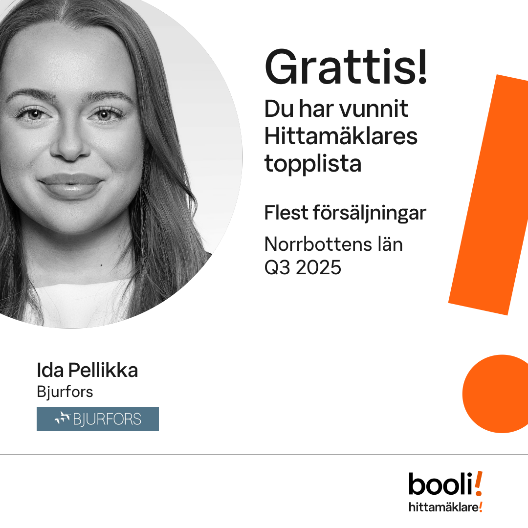 Statistik för publicerade bostäder, försäljningar och omdömen baseras på data från Booli och Hittamäklare. Statistiken för försäljningar avser inrapporterade och verifierade slutpriser från mäklare eller av Booli inhämtade och verifierade slutpriser. Statistiken för publicerade bostäder baseras på information som publicerats på Booli.se. Statistik för omdömen och rekommendationer baseras på omdömen från säljare som lämnats via Booli och Hittamäklare.