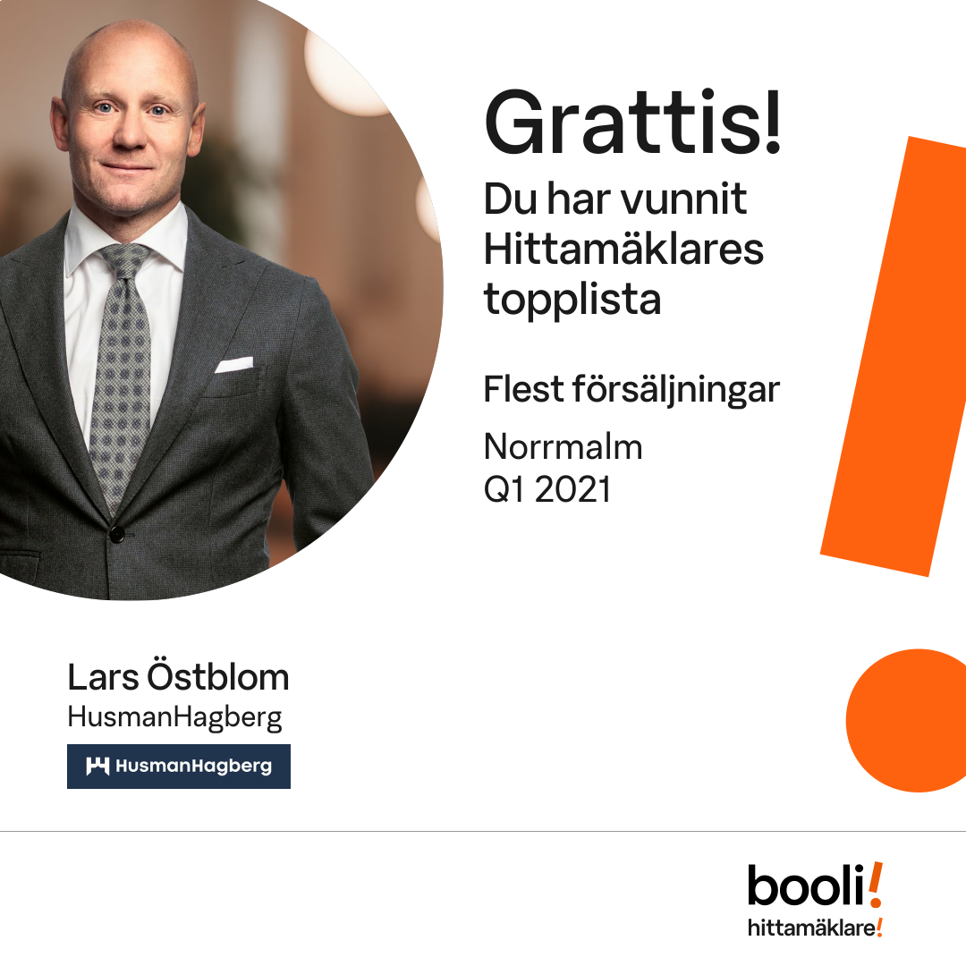 Statistik för publicerade bostäder, försäljningar och omdömen baseras på data från Booli och Hittamäklare. Statistiken för försäljningar avser inrapporterade och verifierade slutpriser från mäklare eller av Booli inhämtade och verifierade slutpriser. Statistiken för publicerade bostäder baseras på information som publicerats på Booli.se. Statistik för omdömen och rekommendationer baseras på omdömen från säljare som lämnats via Booli och Hittamäklare.