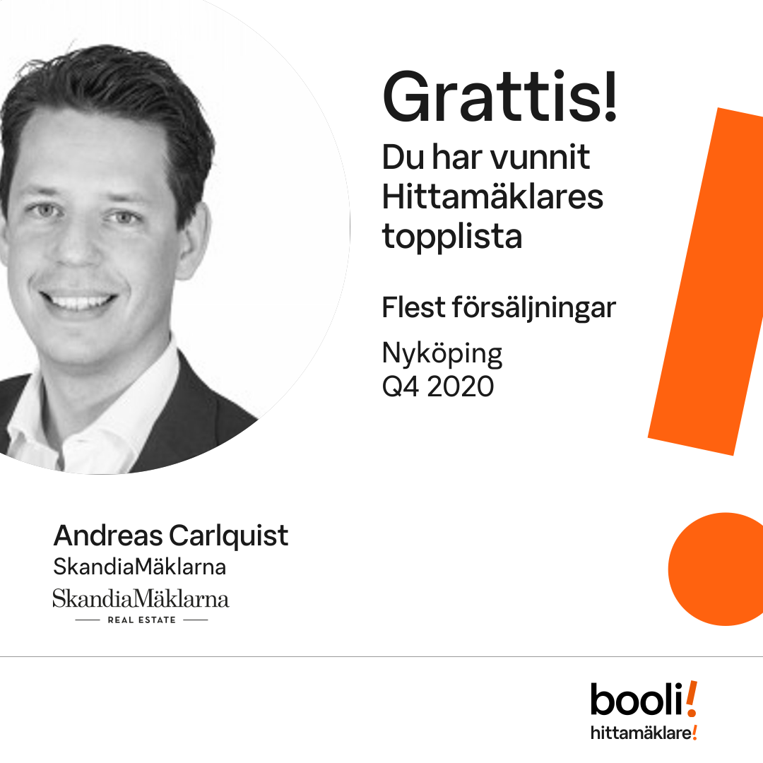 Statistik för publicerade bostäder, försäljningar och omdömen baseras på data från Booli och Hittamäklare. Statistiken för försäljningar avser inrapporterade och verifierade slutpriser från mäklare eller av Booli inhämtade och verifierade slutpriser. Statistiken för publicerade bostäder baseras på information som publicerats på Booli.se. Statistik för omdömen och rekommendationer baseras på omdömen från säljare som lämnats via Booli och Hittamäklare.