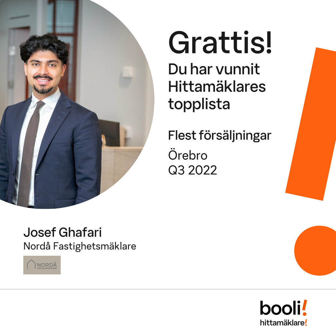 Statistik för publicerade bostäder, försäljningar och omdömen baseras på data från Booli och Hittamäklare. Statistiken för försäljningar avser inrapporterade och verifierade slutpriser från mäklare eller av Booli inhämtade och verifierade slutpriser. Statistiken för publicerade bostäder baseras på information som publicerats på Booli.se. Statistik för omdömen och rekommendationer baseras på omdömen från säljare som lämnats via Booli och Hittamäklare.