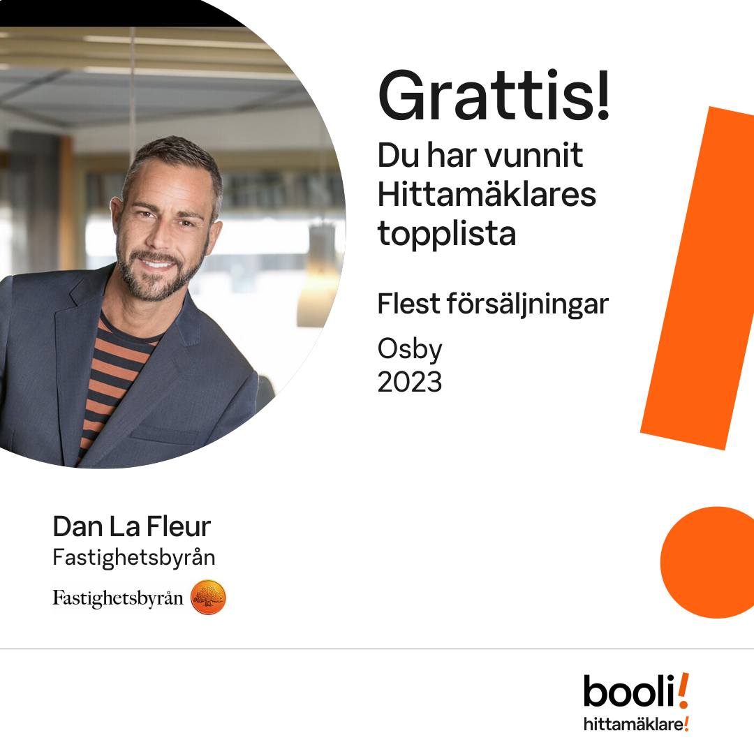 Statistik för publicerade bostäder, försäljningar och omdömen baseras på data från Booli och Hittamäklare. Statistiken för försäljningar avser inrapporterade och verifierade slutpriser från mäklare eller av Booli inhämtade och verifierade slutpriser. Statistiken för publicerade bostäder baseras på information som publicerats på Booli.se. Statistik för omdömen och rekommendationer baseras på omdömen från säljare som lämnats via Booli och Hittamäklare.