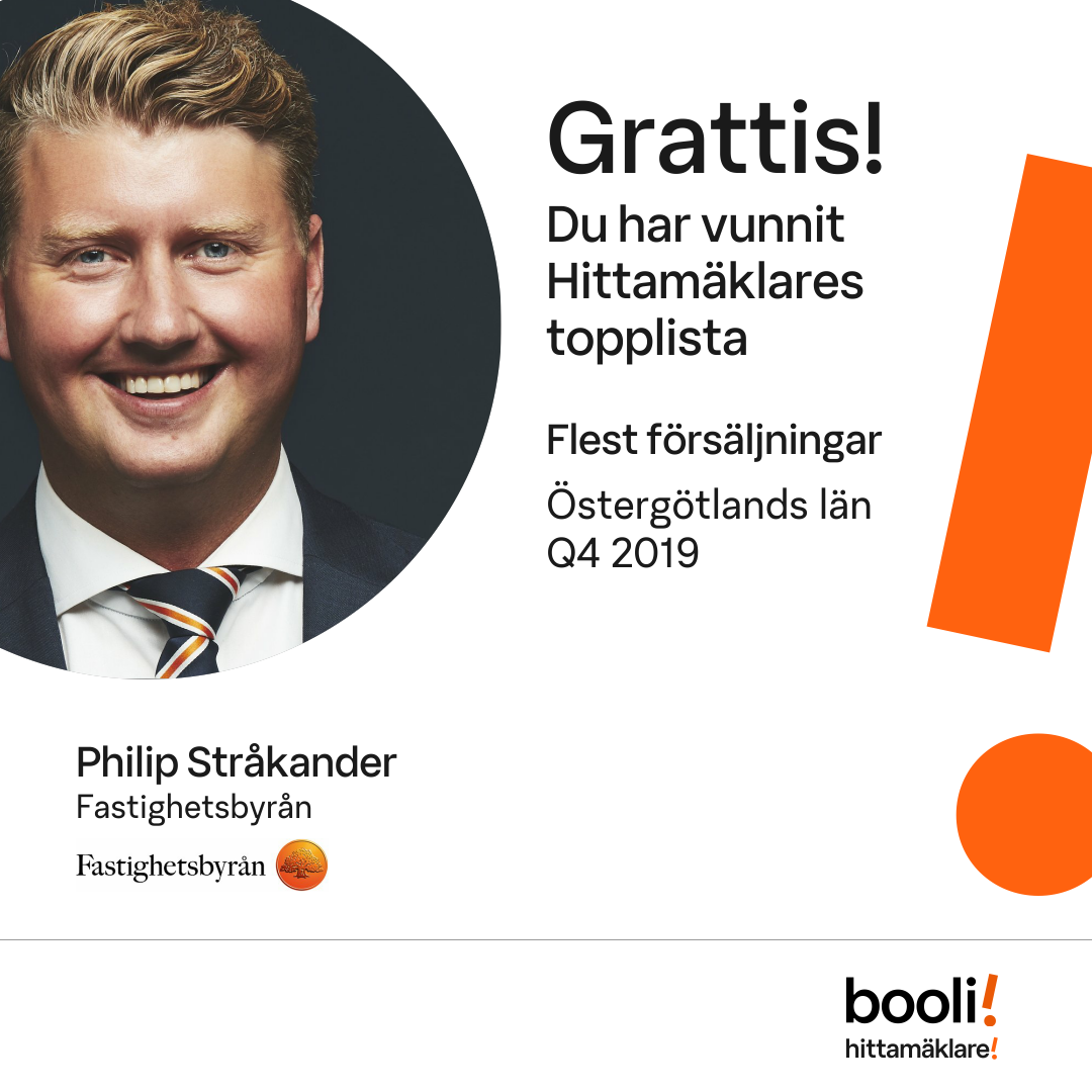 Statistik för publicerade bostäder, försäljningar och omdömen baseras på data från Booli och Hittamäklare. Statistiken för försäljningar avser inrapporterade och verifierade slutpriser från mäklare eller av Booli inhämtade och verifierade slutpriser. Statistiken för publicerade bostäder baseras på information som publicerats på Booli.se. Statistik för omdömen och rekommendationer baseras på omdömen från säljare som lämnats via Booli och Hittamäklare.
