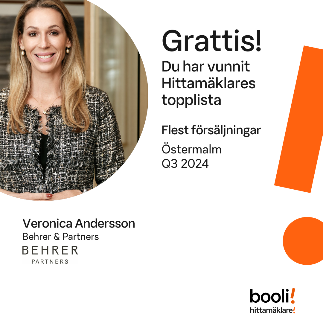 Statistik för publicerade bostäder, försäljningar och omdömen baseras på data från Booli och Hittamäklare. Statistiken för försäljningar avser inrapporterade och verifierade slutpriser från mäklare eller av Booli inhämtade och verifierade slutpriser. Statistiken för publicerade bostäder baseras på information som publicerats på Booli.se. Statistik för omdömen och rekommendationer baseras på omdömen från säljare som lämnats via Booli och Hittamäklare.