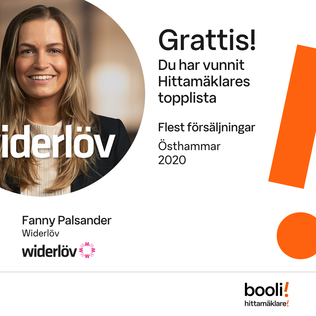 Statistik för publicerade bostäder, försäljningar och omdömen baseras på data från Booli och Hittamäklare. Statistiken för försäljningar avser inrapporterade och verifierade slutpriser från mäklare eller av Booli inhämtade och verifierade slutpriser. Statistiken för publicerade bostäder baseras på information som publicerats på Booli.se. Statistik för omdömen och rekommendationer baseras på omdömen från säljare som lämnats via Booli och Hittamäklare.
