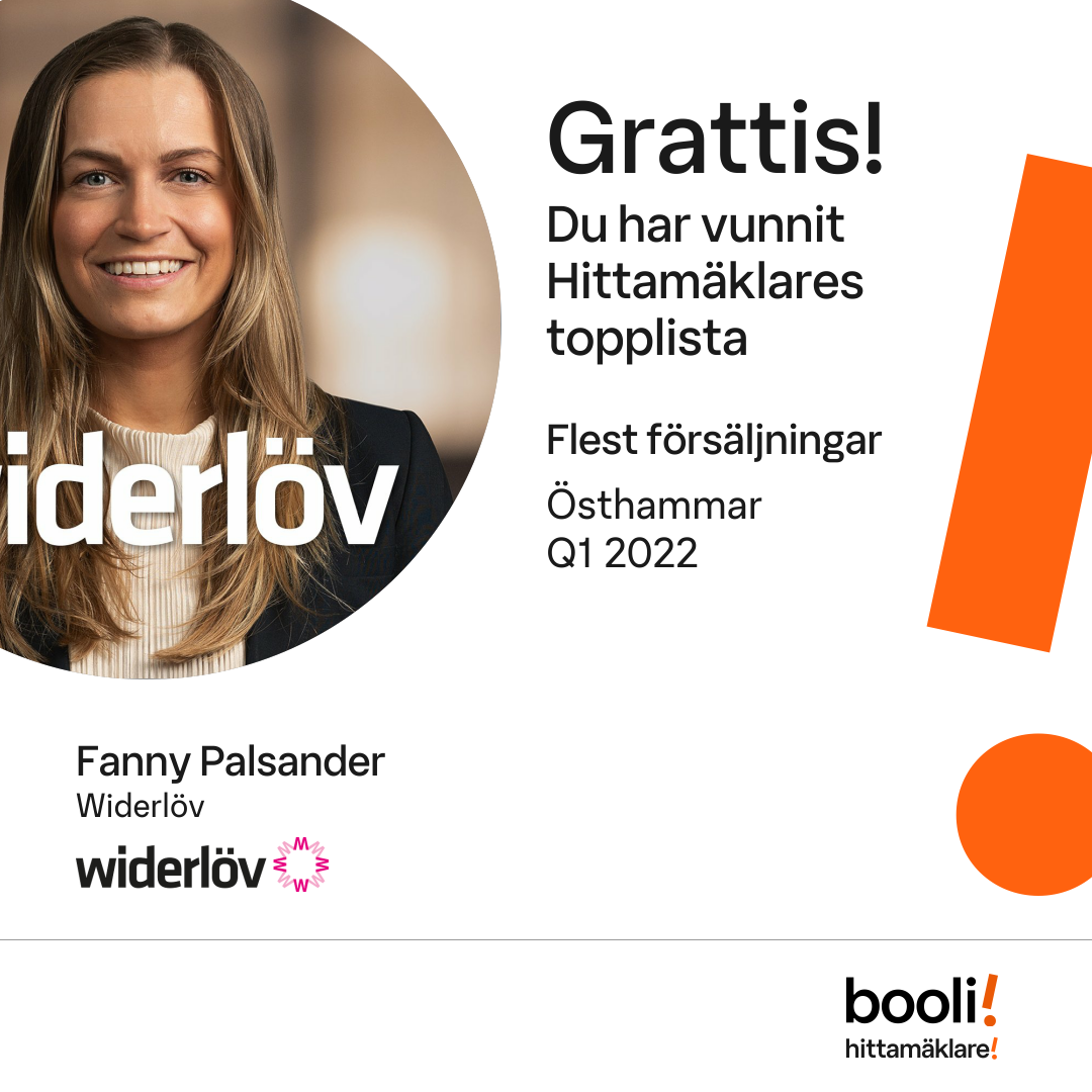 Statistik för publicerade bostäder, försäljningar och omdömen baseras på data från Booli och Hittamäklare. Statistiken för försäljningar avser inrapporterade och verifierade slutpriser från mäklare eller av Booli inhämtade och verifierade slutpriser. Statistiken för publicerade bostäder baseras på information som publicerats på Booli.se. Statistik för omdömen och rekommendationer baseras på omdömen från säljare som lämnats via Booli och Hittamäklare.