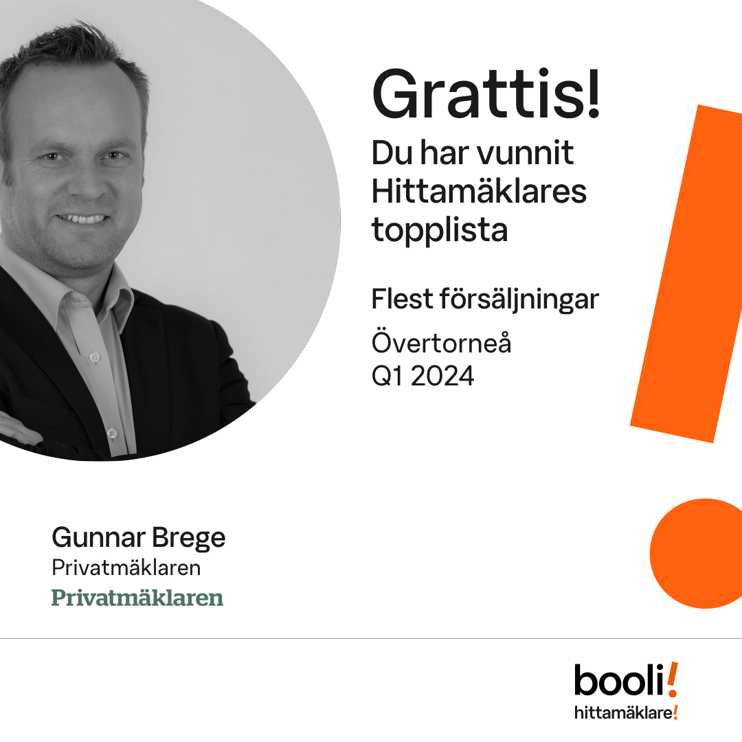 Statistik för publicerade bostäder, försäljningar och omdömen baseras på data från Booli och Hittamäklare. Statistiken för försäljningar avser inrapporterade och verifierade slutpriser från mäklare eller av Booli inhämtade och verifierade slutpriser. Statistiken för publicerade bostäder baseras på information som publicerats på Booli.se. Statistik för omdömen och rekommendationer baseras på omdömen från säljare som lämnats via Booli och Hittamäklare.