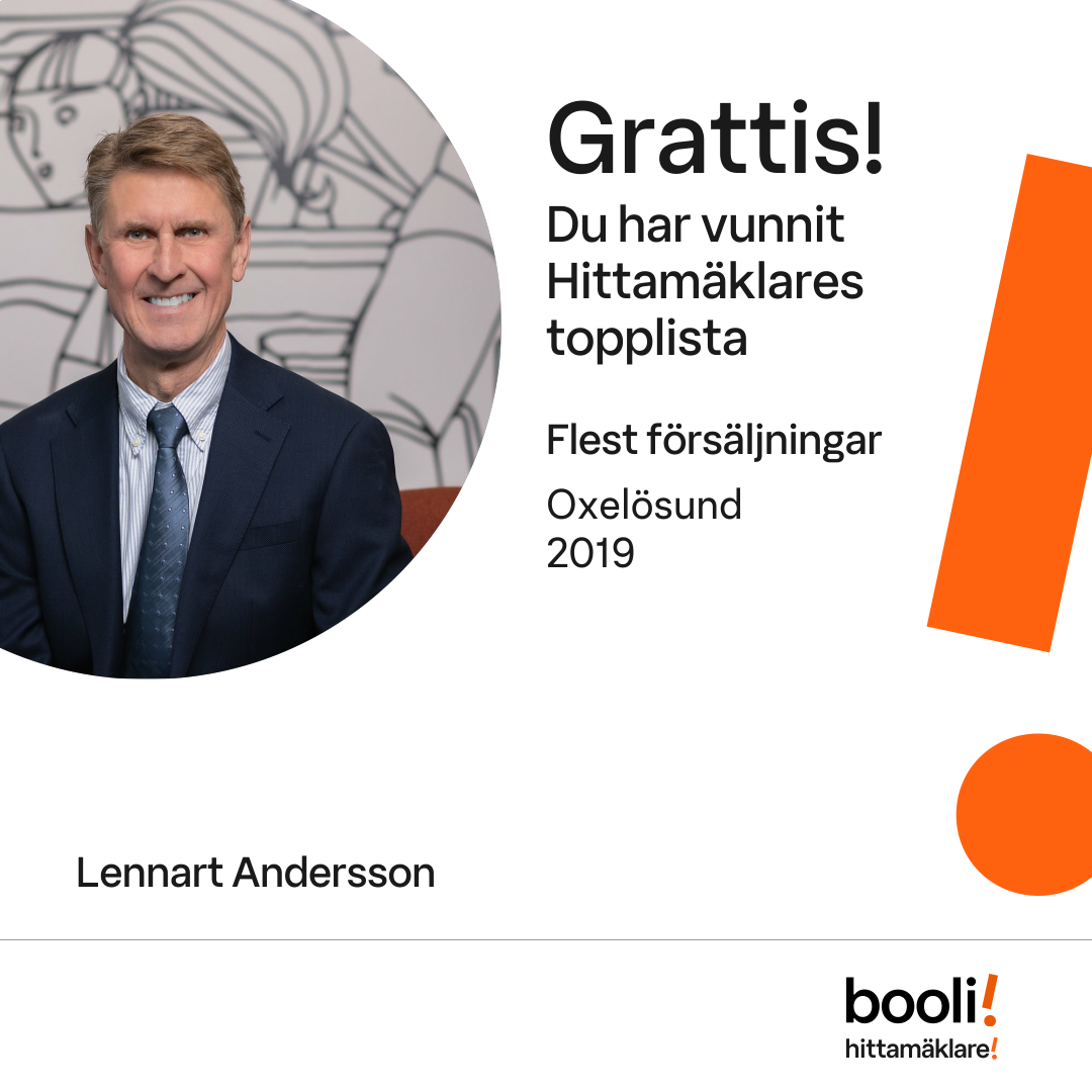 Statistik för publicerade bostäder, försäljningar och omdömen baseras på data från Booli och Hittamäklare. Statistiken för försäljningar avser inrapporterade och verifierade slutpriser från mäklare eller av Booli inhämtade och verifierade slutpriser. Statistiken för publicerade bostäder baseras på information som publicerats på Booli.se. Statistik för omdömen och rekommendationer baseras på omdömen från säljare som lämnats via Booli och Hittamäklare.