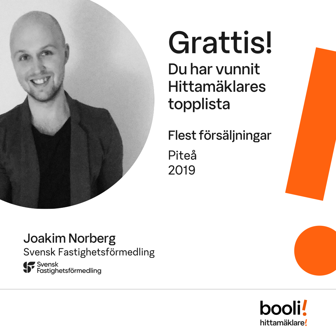 Statistik för publicerade bostäder, försäljningar och omdömen baseras på data från Booli och Hittamäklare. Statistiken för försäljningar avser inrapporterade och verifierade slutpriser från mäklare eller av Booli inhämtade och verifierade slutpriser. Statistiken för publicerade bostäder baseras på information som publicerats på Booli.se. Statistik för omdömen och rekommendationer baseras på omdömen från säljare som lämnats via Booli och Hittamäklare.