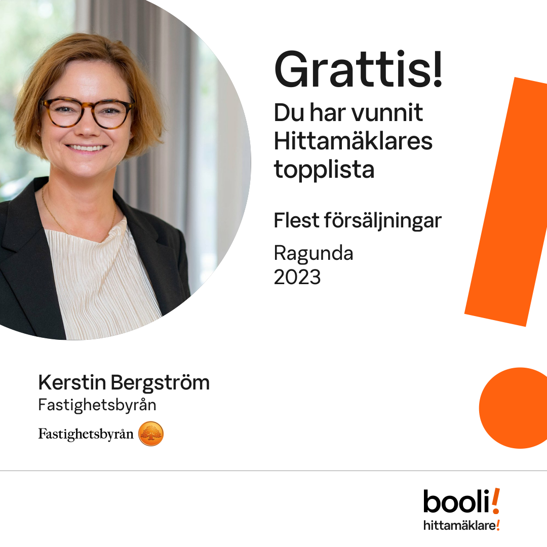 Statistik för publicerade bostäder, försäljningar och omdömen baseras på data från Booli och Hittamäklare. Statistiken för försäljningar avser inrapporterade och verifierade slutpriser från mäklare eller av Booli inhämtade och verifierade slutpriser. Statistiken för publicerade bostäder baseras på information som publicerats på Booli.se. Statistik för omdömen och rekommendationer baseras på omdömen från säljare som lämnats via Booli och Hittamäklare.